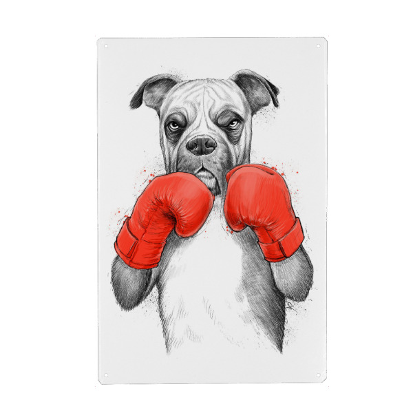 Metall Poster "Boxer" artboxONE - Natur,Tiere,Sport - Hund,Tier,Boxer,Boxen,Handschuhe,Digitale kunst,Hund,Boxen,Haustier,Handschuhe - Blechschild