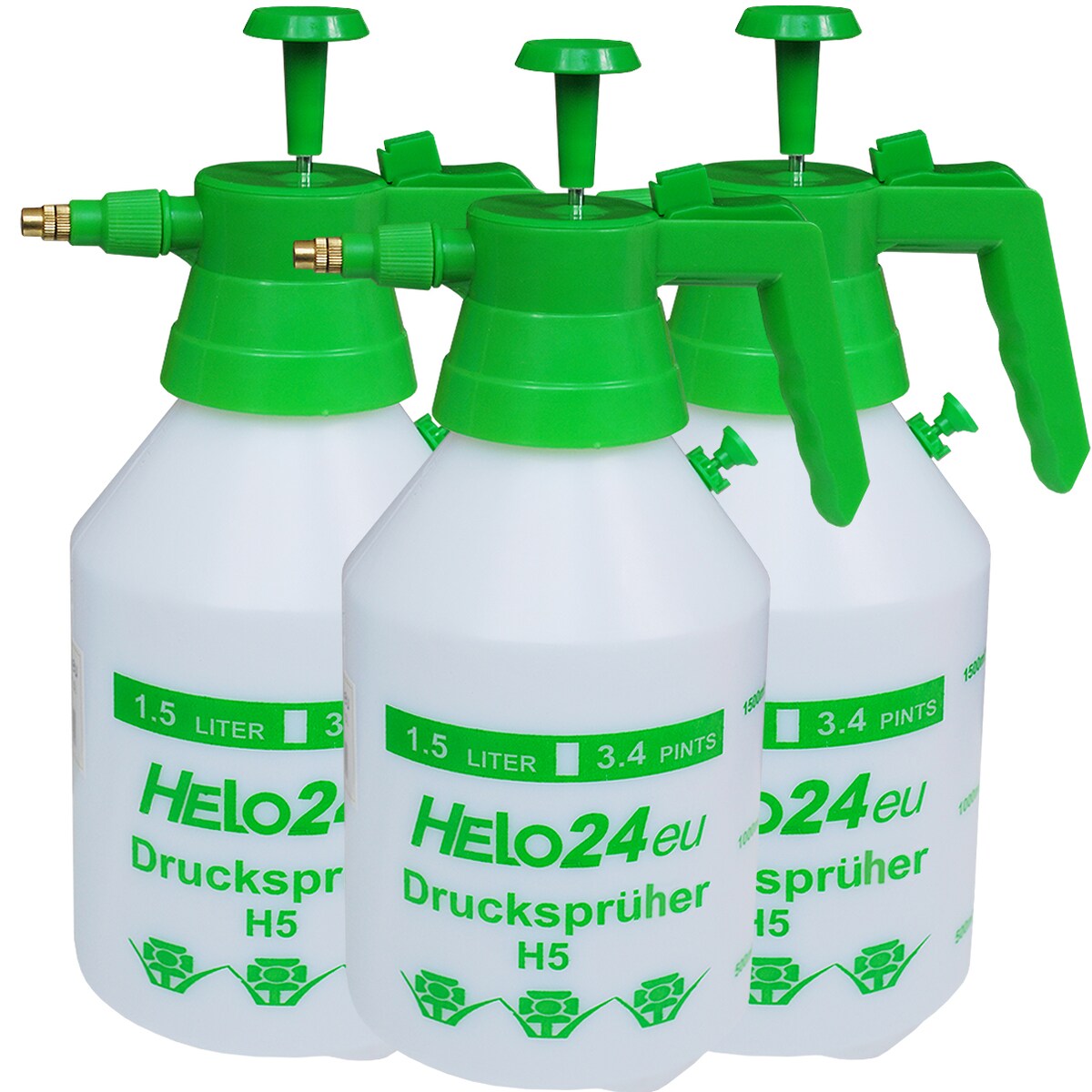 3x Drucksprüher Transparent 1,5 Liter mit Messingdüse Pumpsprühflasche Sprühflasche Handsprüher Pumpsprüher