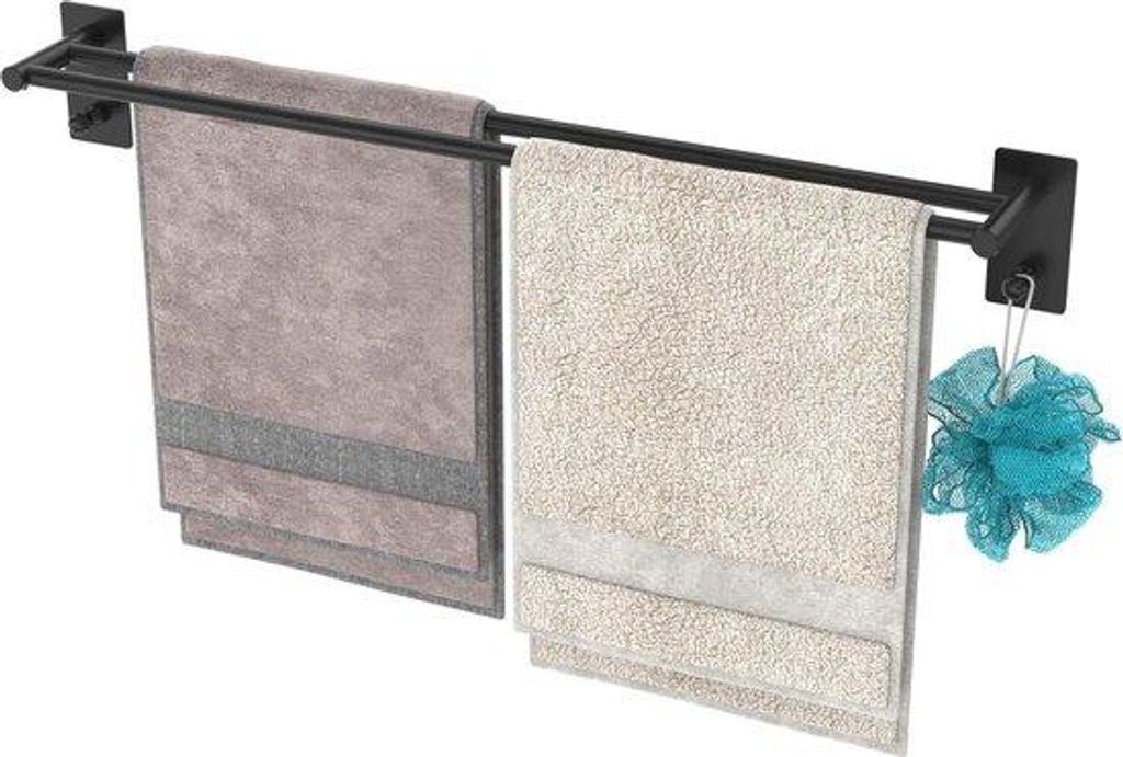 Handtuchhalter Edelstahl, 40 cm, Doppelte Stange, Wandmontage, Rutschfest, Kleben oder Bohren, Modern, für Bad & Küche, Schwarz