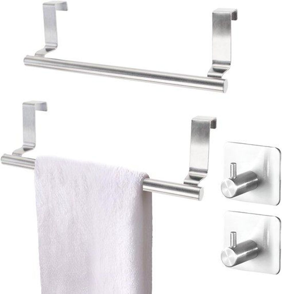 10338 | Handtuchhalter Küche Duo, Türhaken Hakenleiste Bad| Edelstahl, Silberfarben | Doppelpack, Selbstklebend | 23x7.2x6CM