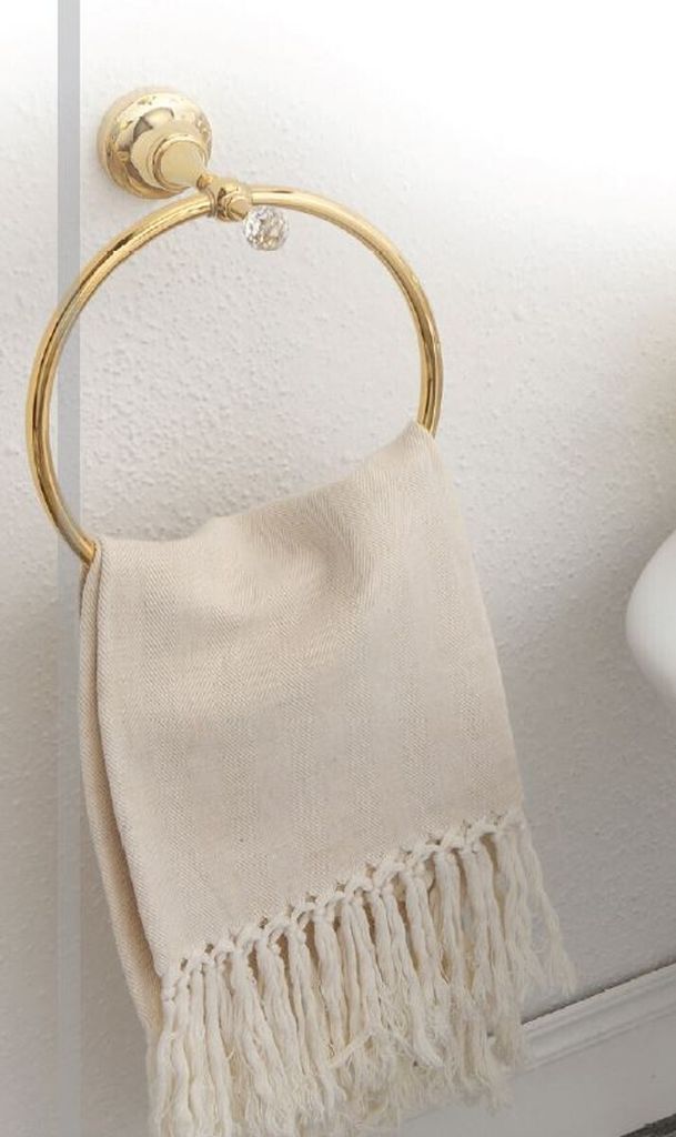Luxus Handtuchhalter / Handtuchring mit Swarovski Kristallglas Gold 20,2 x 9,3 x H. 22 cm - Luxus Bad Zubehör - Italy
