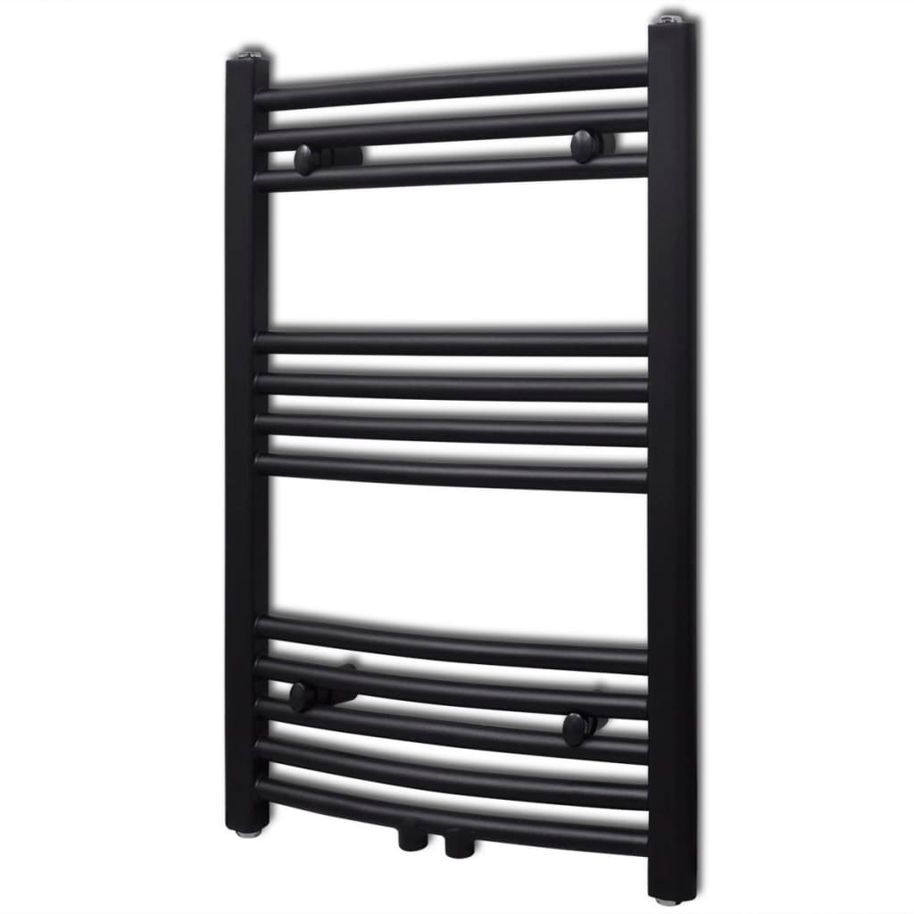 vidaXL Handtuchheizkörper Warmwasser Gebogen Schwarz 500x764 mm
