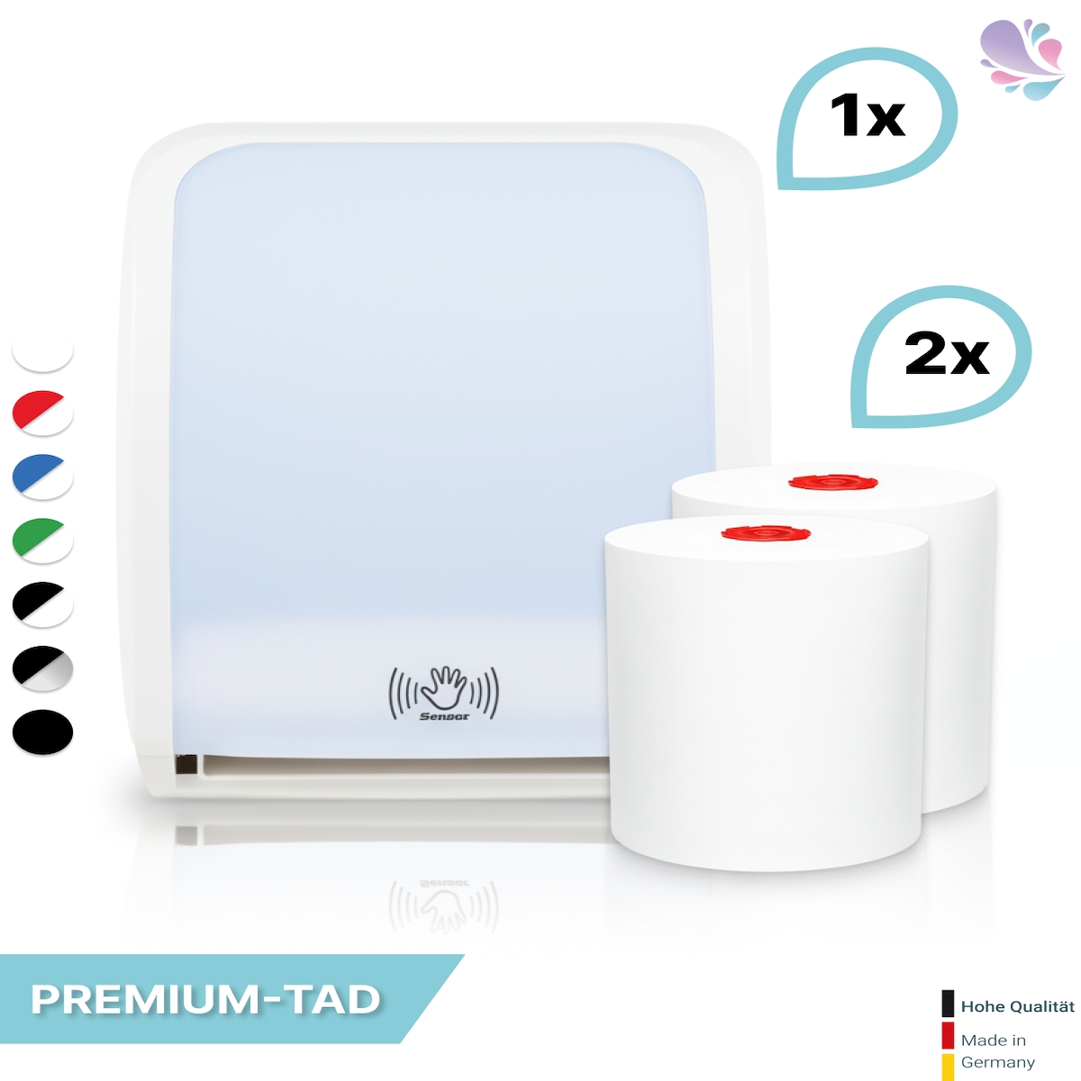 SET: Handtuchrollenspender SENSOR, berührungslos, Blanc Cosmos verschied. Farben + 2 Handtuchrollen PREMIUM TAD - PRODUKTSET : Farbe - Weiß Farbe...