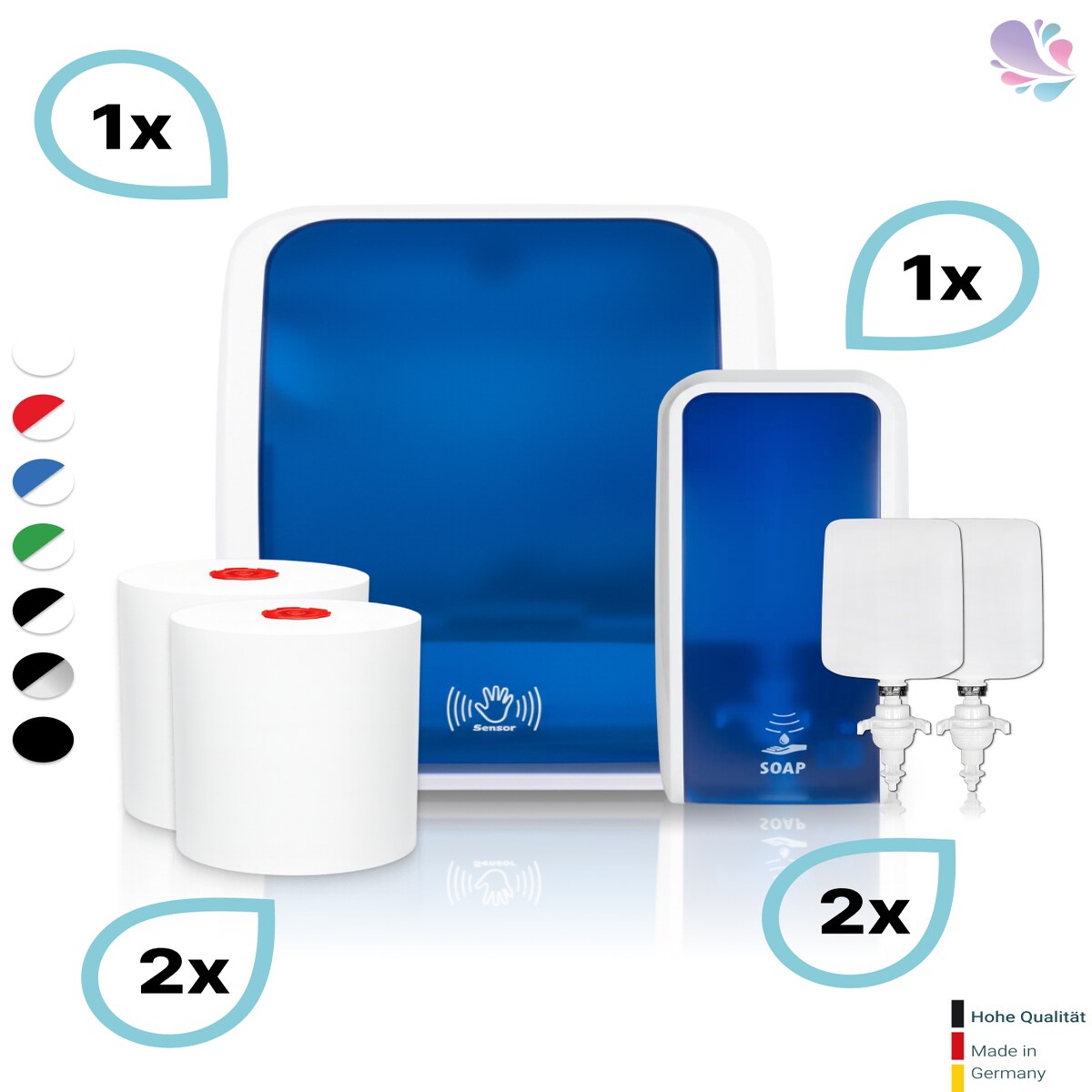 SET: Handtuchrollenspender SENSOR, berührungslos, Blanc Cosmos verschied. Farben + 2 Handtuchrollen Classico BLAU - PRODUKTSET : Farbe - Grün / W...