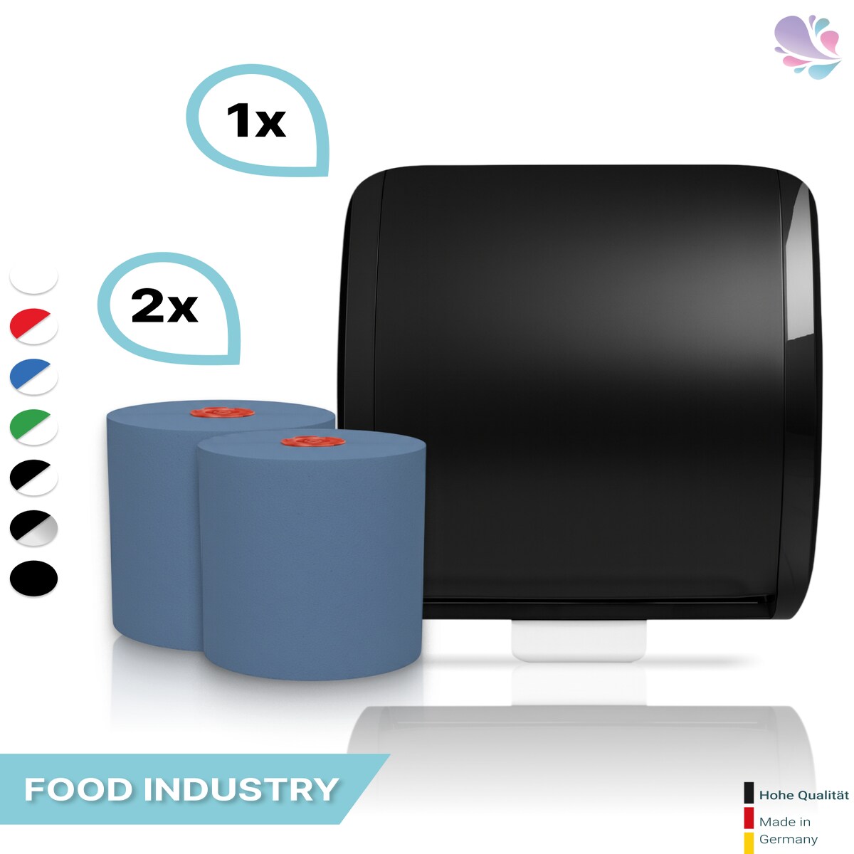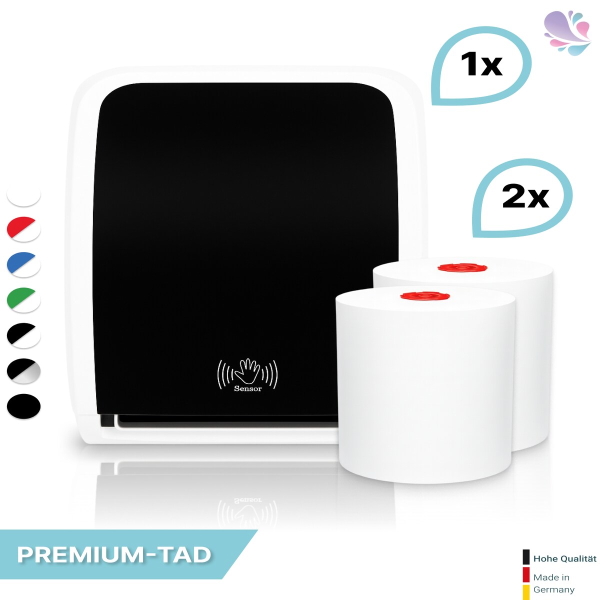 SET: Handtuchrollenspender Autocut, Blanc Cosmos verschied. Farben + 2 Handtuchrollen PREMIUM TAD - PRODUKTSET : Farbe - Schwarz / Weiß Farbe: Sch...