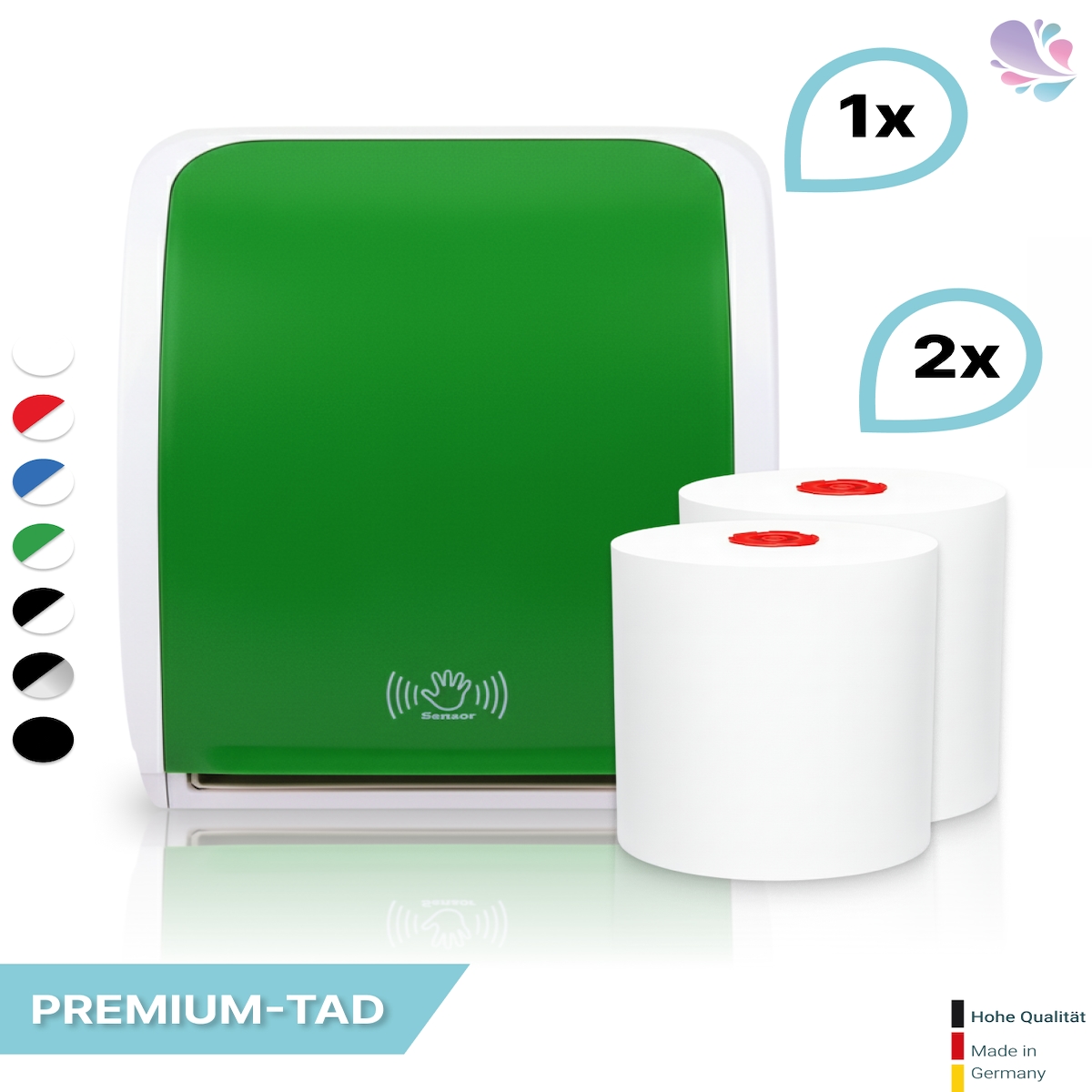 SET: Handtuchrollenspender SENSOR, berührungslos, Blanc Cosmos versch.Farben+ 1Rolle PREMIUM TAD +1Rolle ECO Natural -PRODUKTSET : Farbe - Grün /...