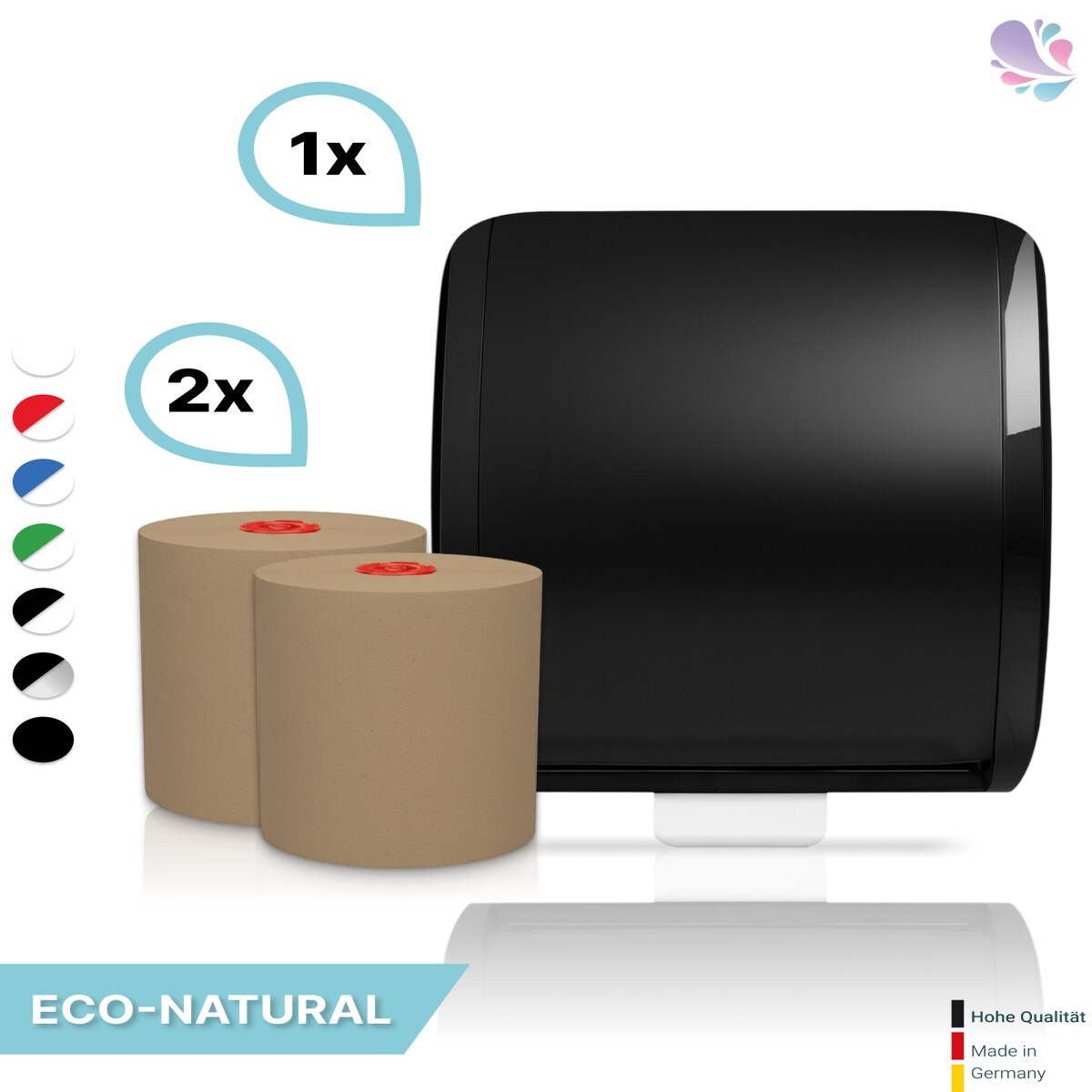 SET: Handtuchrollenspender Autocut, Blanc Cosmos verschied. Farben + 2 Handtuchrollen ECO Natural - PRODUKTSET : Farbe - Schwarz Farbe: Schwarz