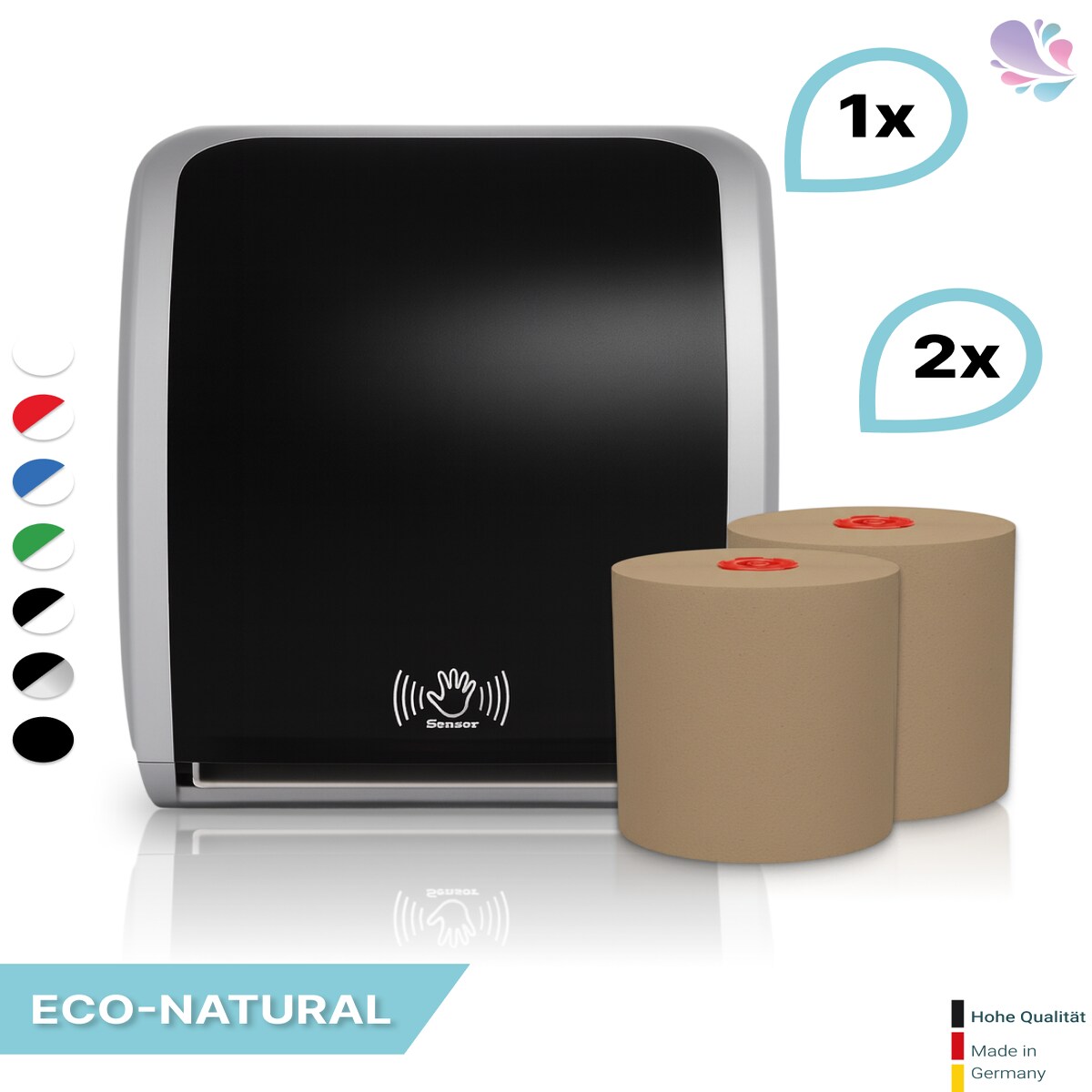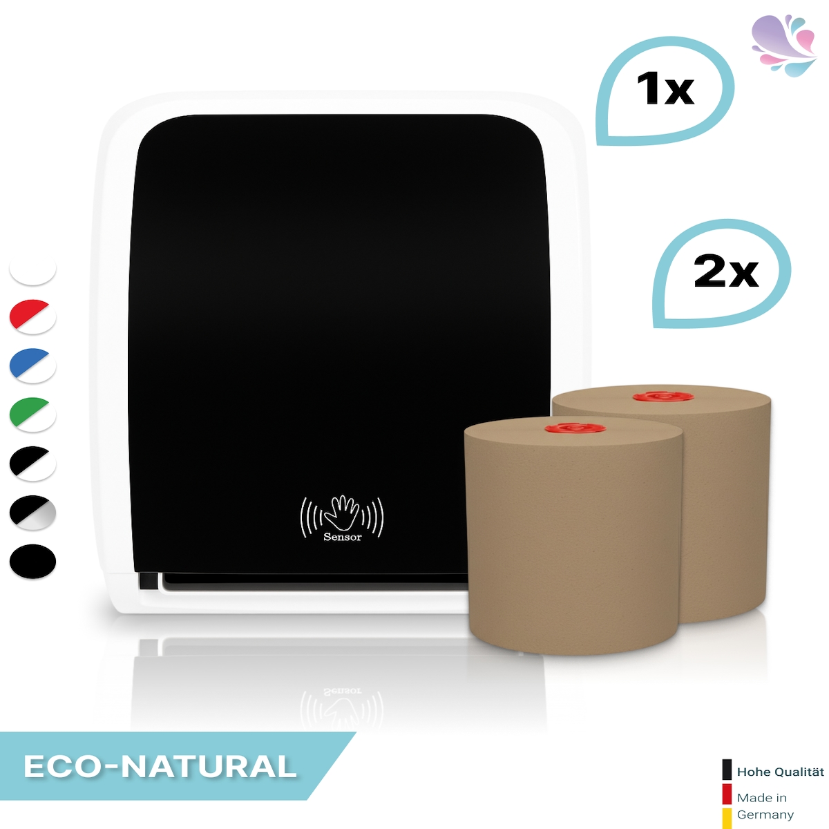 SET: Handtuchrollenspender SENSOR, berührungslos, Blanc Cosmos verschied. Farben + 2 Handtuchrollen ECO-Natural - PRODUKTSET : Farbe - Schwarz / W...