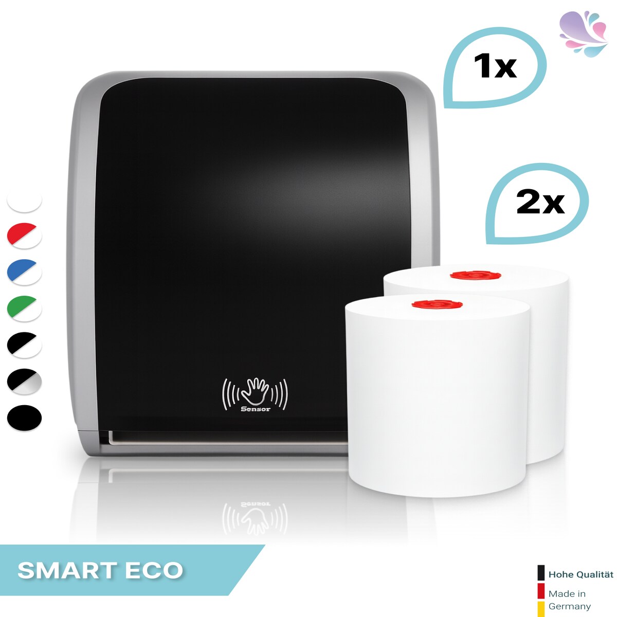 SET: Handtuchrollenspender SENSOR, berührungslos, Blanc Cosmos verschied. Farben + 2 Handtuchrollen Smart ECO - PRODUKTSET : Farbe - Schwarz / Wei...