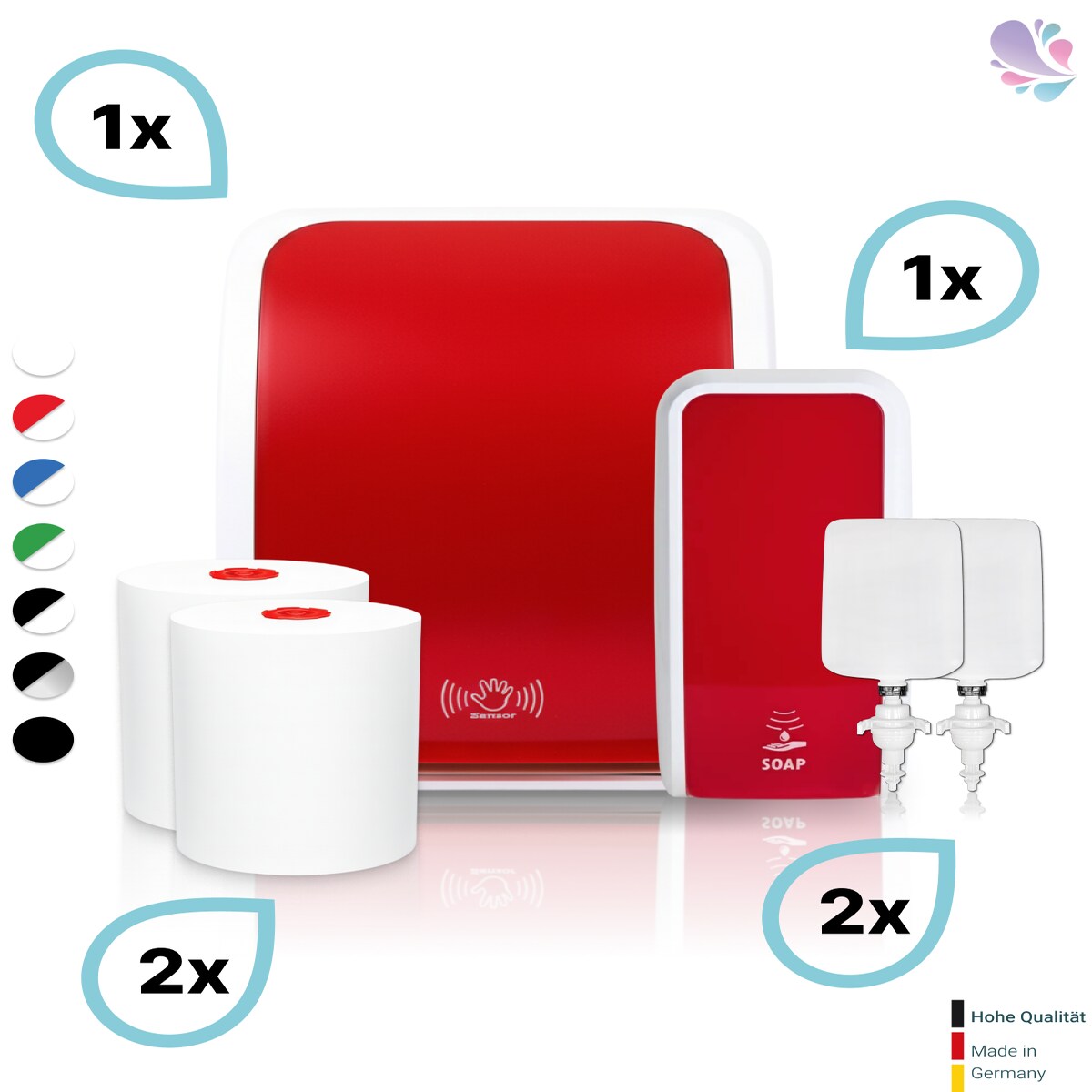 SET: Handtuchrollenspender SENSOR, berührungslos, Blanc Cosmos verschied. Farben + 2 Handtuchrollen ECO-Natural - PRODUKTSET : Farbe - Rot / Weiß...