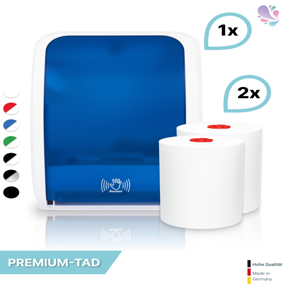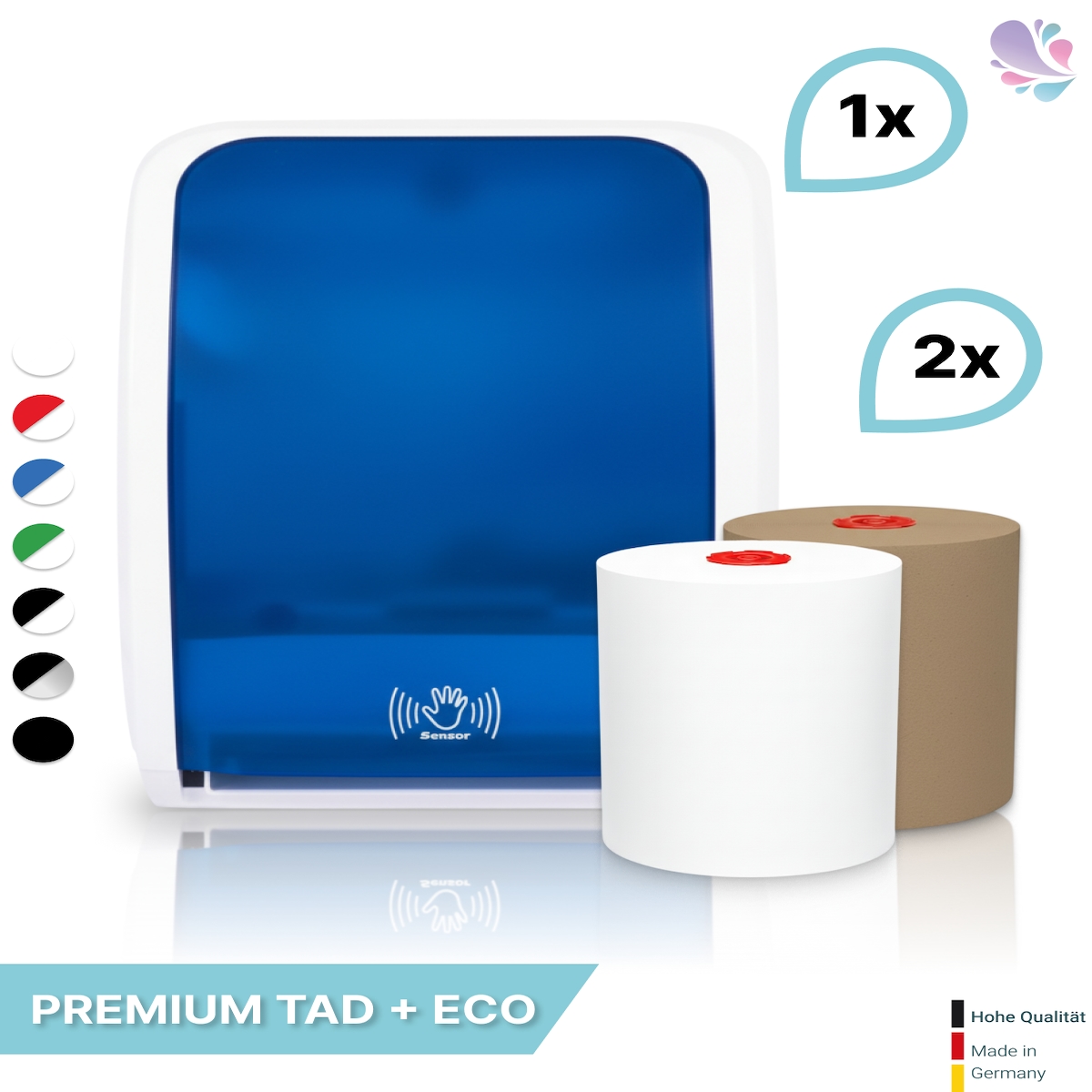 SET: Handtuchrollenspender SENSOR, berührungslos, Blanc Cosmos versch.Farben+ 1Rolle PREMIUM TAD +1Rolle ECO Natural -PRODUKTSET : Farbe - Blau / ...