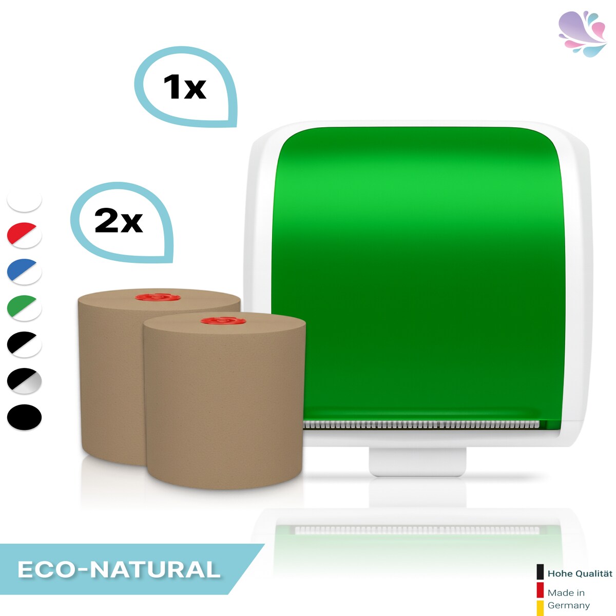 SET: Handtuchrollenspender SENSOR, berührungslos, Blanc Cosmos verschied. Farben + 2 Handtuchrollen ECO-Natural - PRODUKTSET : Farbe - Grün / Wei...
