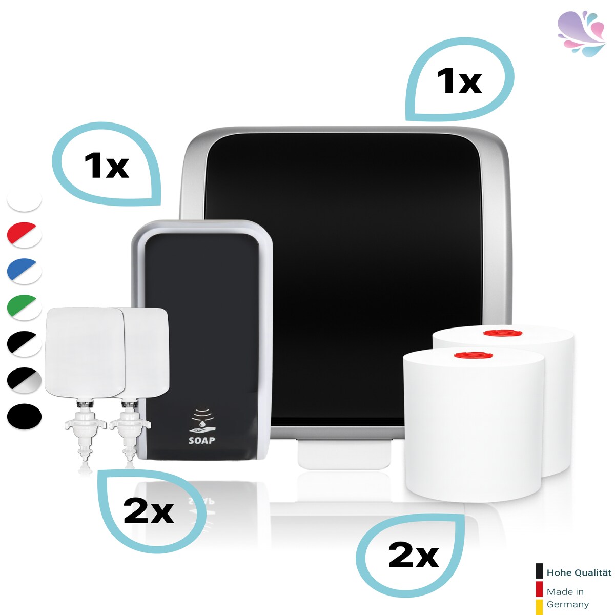 Blanc HYGIENIC KOMPLETT-SET Waschraum SENSOR: Handtuchrollenspender SENSOR + 2 TAD Handtuchrollen + Schaumseifenspender SENSOR + 2 Kartuschen
