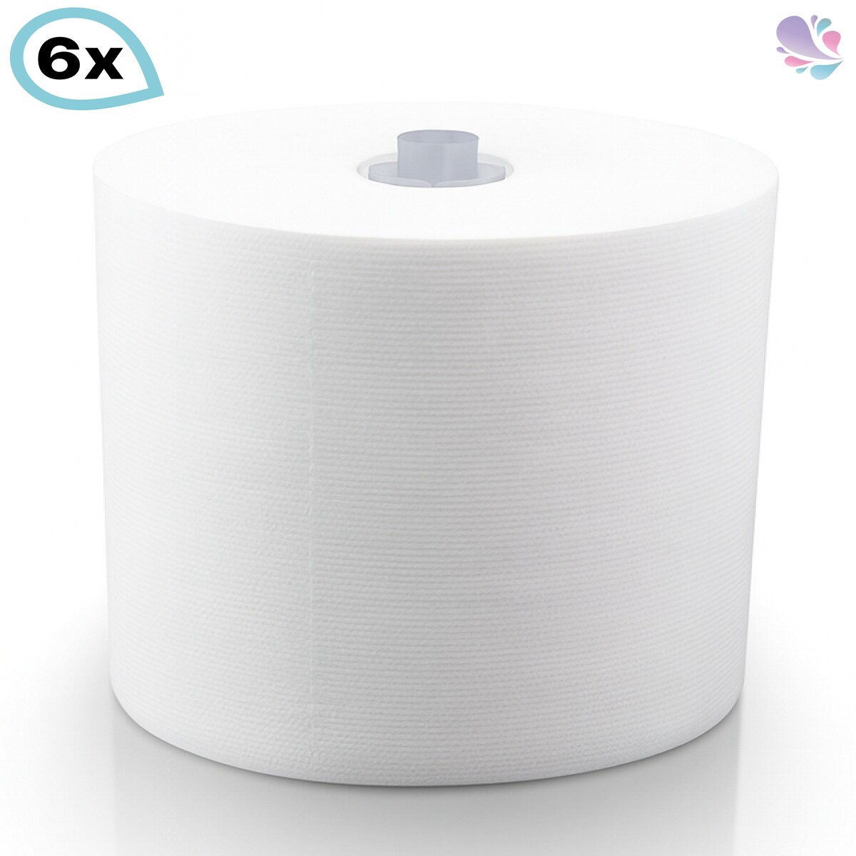 Handtuchrollen 6 Rollen je SET, 2-lagig, 140m je Rolle, 100% Zellstoff, universeller weißer Adapter für Cosmos Handtuchspender Verpackungseinheit...