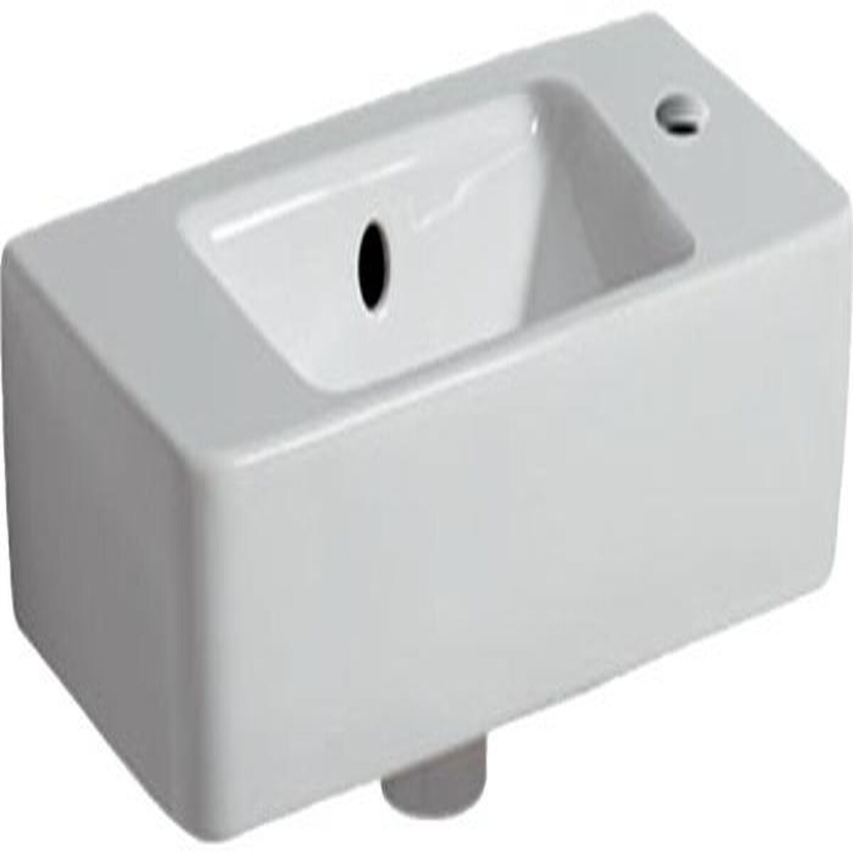 Handwaschbecken Kartell • 280x460x150 asymmetrisch 1 Hahnloch ohne Überlauf versteckter Ablauf mit Armaturenbank rechts weiß