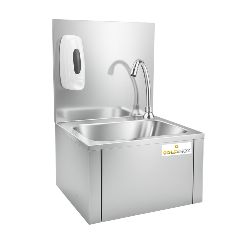 Handwaschbecken mit Oberschenkelbedienung + Seifenspender PREMIUM / GOLDINOX