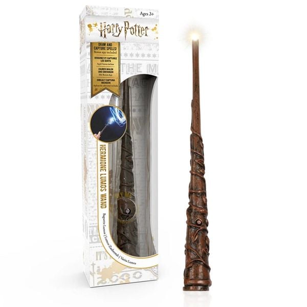 Harry Potter Zauberstab Hermione Granger mit LED-Lumos-Spitze, Handbemalt aus Harz, Inklusive App für Lichtzauber & Duelle, ca. 18 cm,