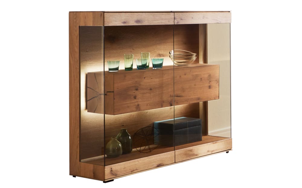 hartmann Highboard II CAYA 127 x 119 cm Kerneiche - Massivholz mit Glas - inklusive LED-Beleuchtung