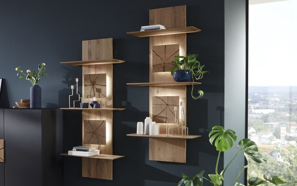 hartmann Wohnwand II CAYA 324 x 223 cm Kerneiche /weiß - Massivholz mit Hirnholzapplikation