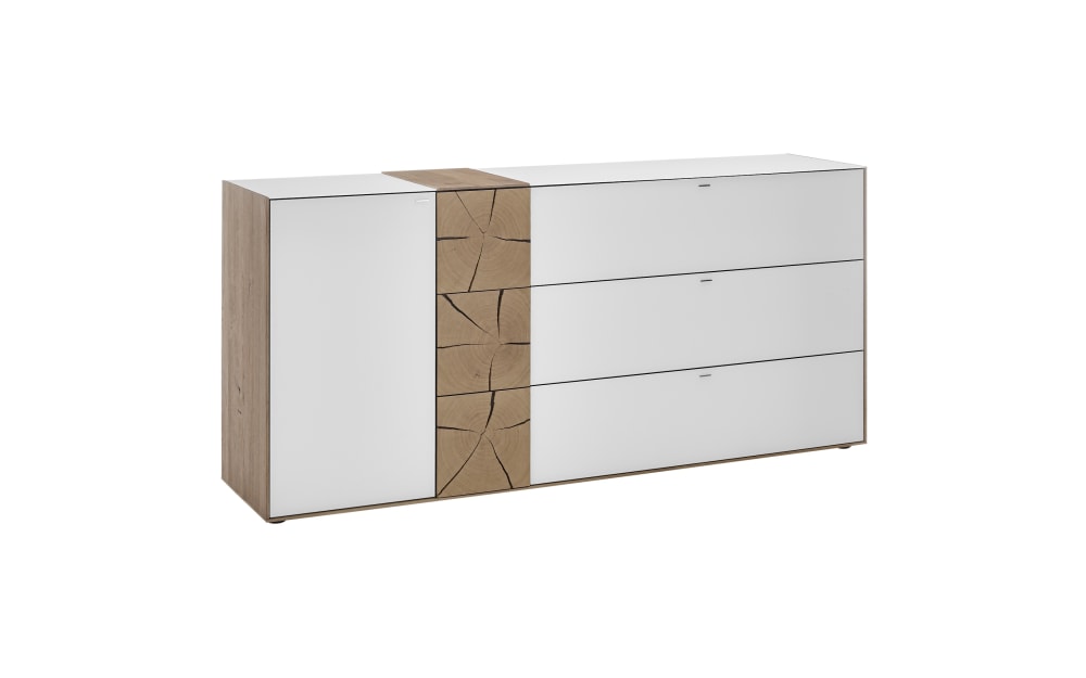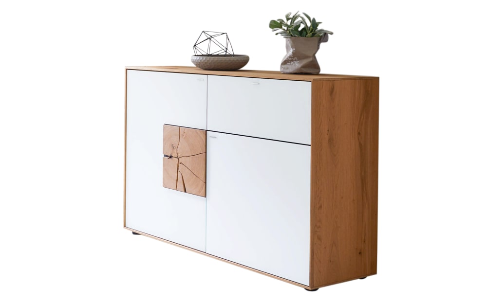 hartmann Sideboard I CAYA 175 x 81 cm Kerneiche /weiß - Mattglas Weiß - Hirnholzscheiben