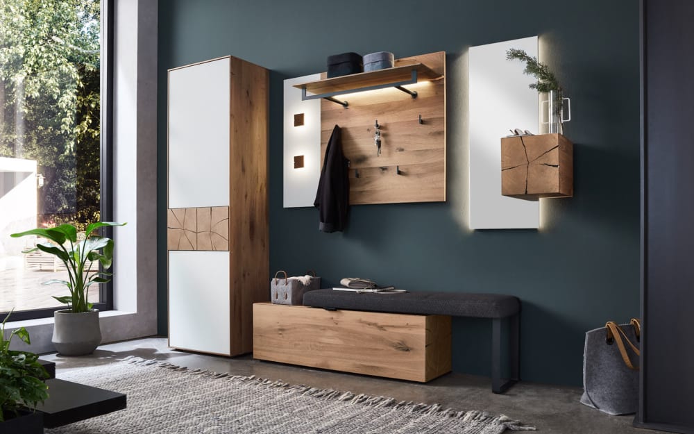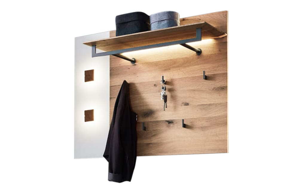 Hartmann Wandgarderobe Caya, Kerneiche Umato/weiß weiß, holz Massivholz, Glas, Holz, Metall