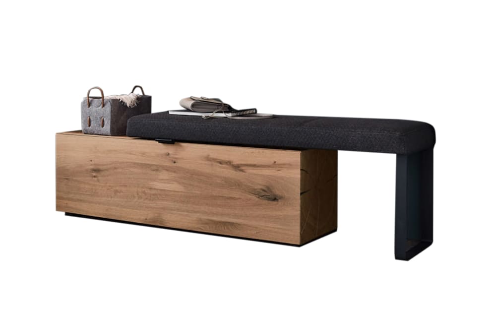 Hartmann Sitzbank Caya, Kerneiche Umato/schwarz schwarz, holz Stoff, Massivholz, Holz, Metall