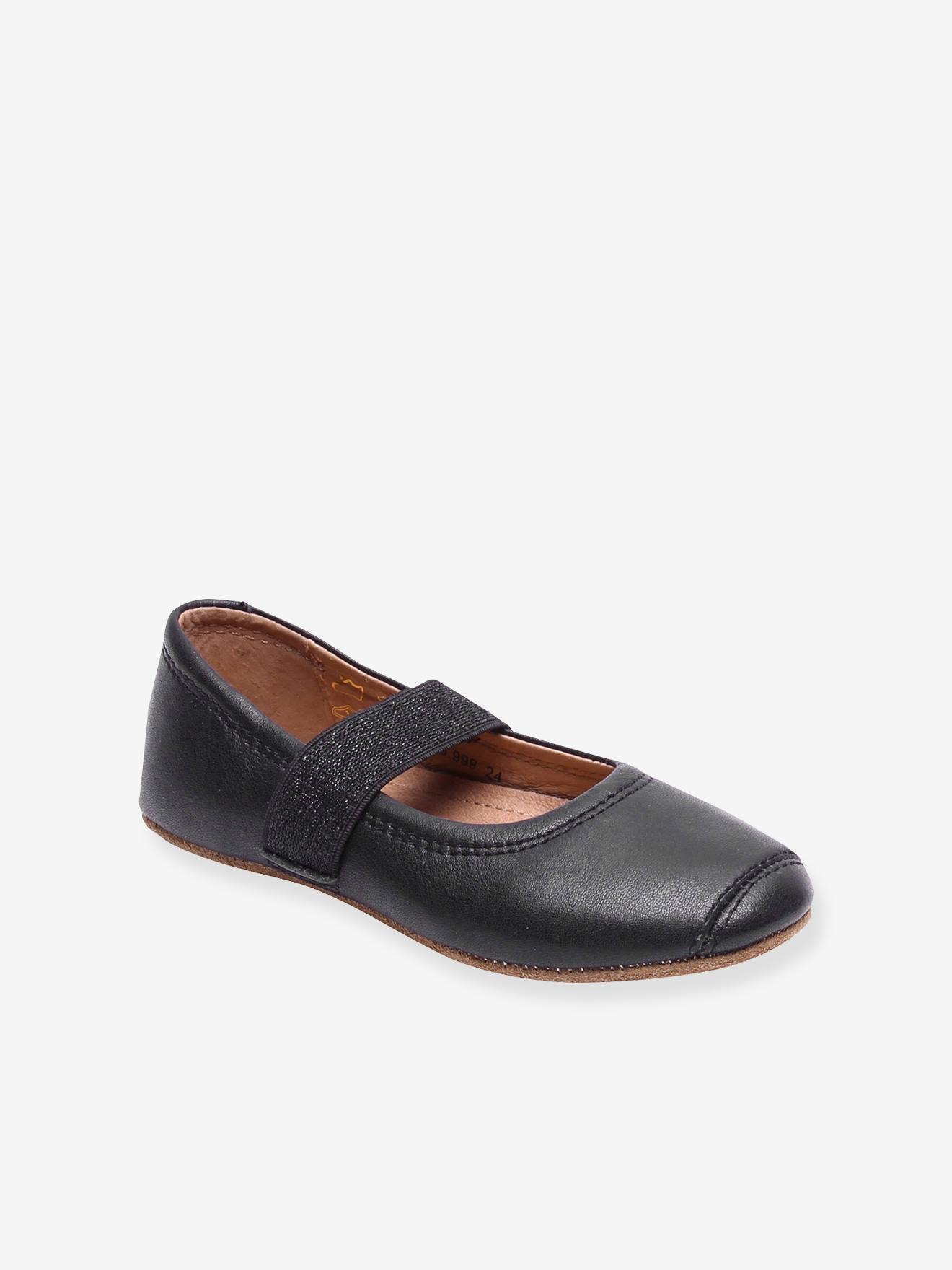 Mädchen Hausschuhe BAREFOOT 395 Gold Hearts Schwarz, Klettverschluss