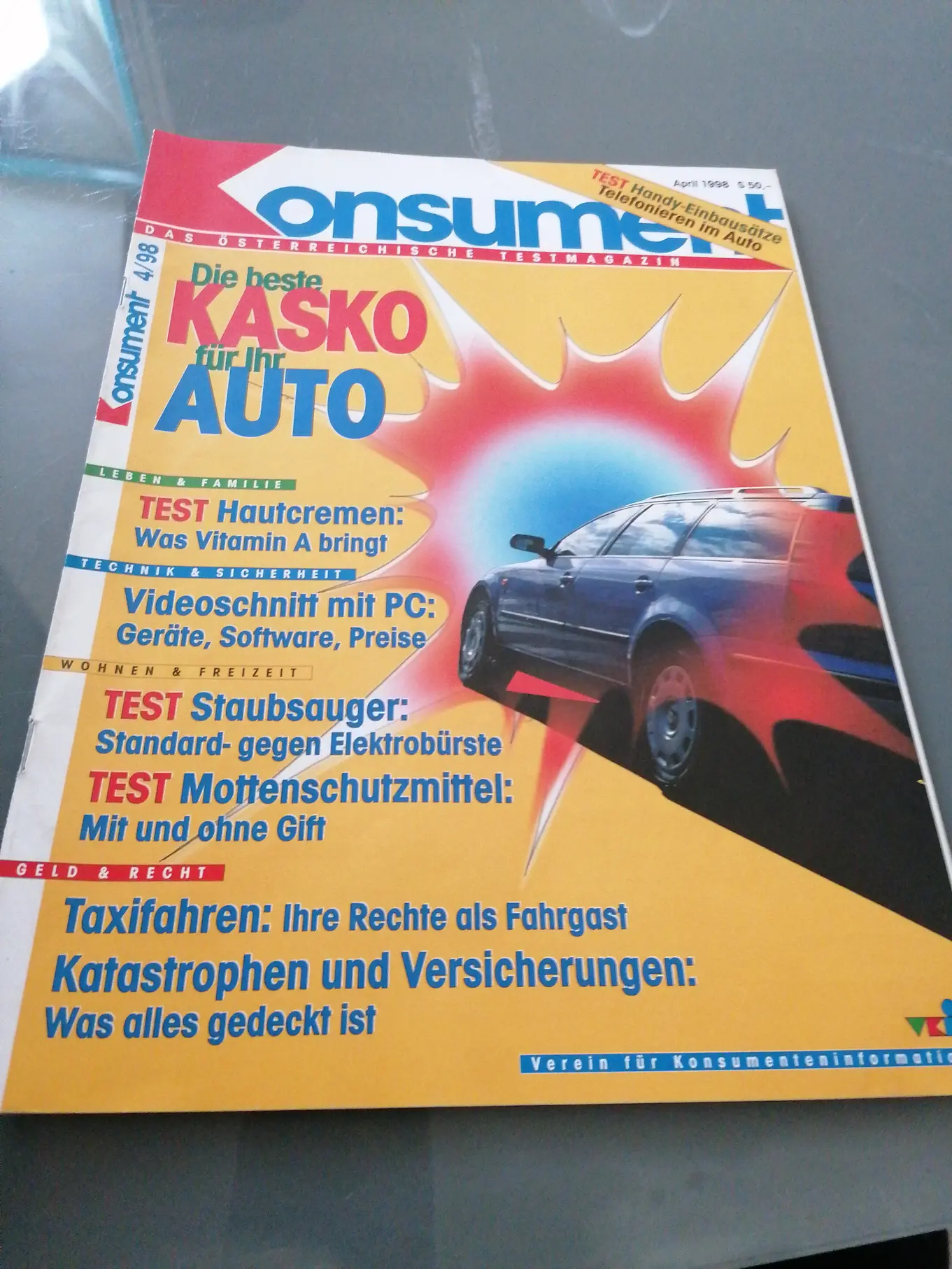 KONSUMENT 4/98 Auto Kasko Hautcreme Staubsauger Zeitschrift 1998