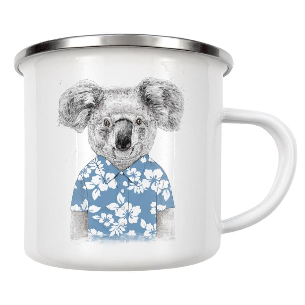 Emaille Tasse "Summer Koala (blue)" artboxONE - Tiere - Koala,Animal,Shirt,Summer,Drawing,Humor,Funny,Hawaiihemd,Koalabär,Sommer,Urlaub