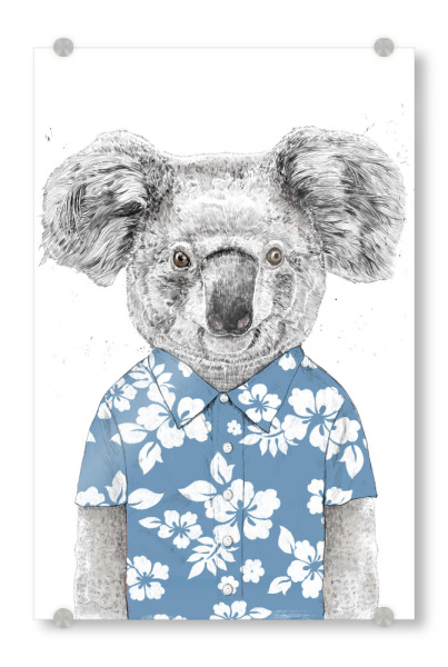 Acrylglasbild "Summer Koala (blue)" artboxONE - Tiere - Koala,Animal,Shirt,Summer,Drawing,Humor,Funny,Hawaiihemd,Koalabär,Sommer,Urlaub