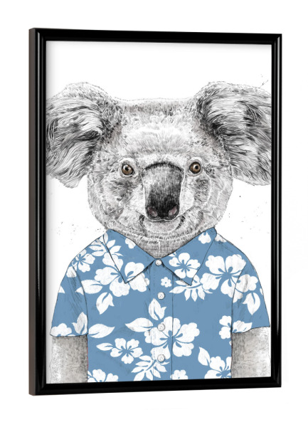 Poster mit schwarzem Rahmen "Summer Koala (blue)" artboxONE - Tiere - Koala,Animal,Shirt,Summer,Drawing,Humor,Funny,Hawaiihemd,Koalabär,Sommer,Urlaub