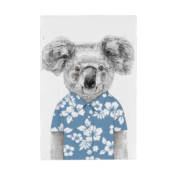 Metall Poster "Summer Koala (blue)" artboxONE - Tiere - Koala,Animal,Shirt,Summer,Drawing,Humor,Funny,Hawaiihemd,Koalabär,Sommer,Urlaub - Blechschild
