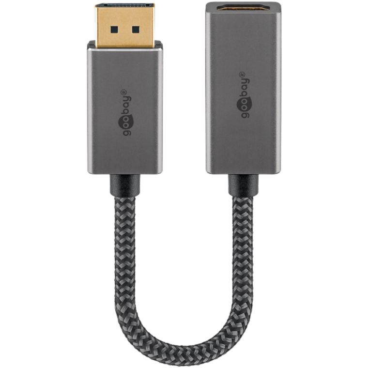 goobay Plus DisplayPort > HDMI Adapterkabel, 8K @ 60Hz Kabel, grau, 20cm, 32