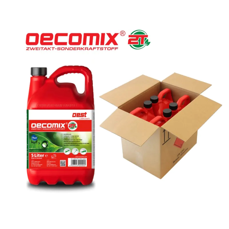 4x Oest Oecomix 2T Sonderkraftstoff, 5 Liter, 2-Takt Benzin, ideal für Motorsensen, Motorsägen, Heckenscheren, robust, sauber verbrennend, leistungs