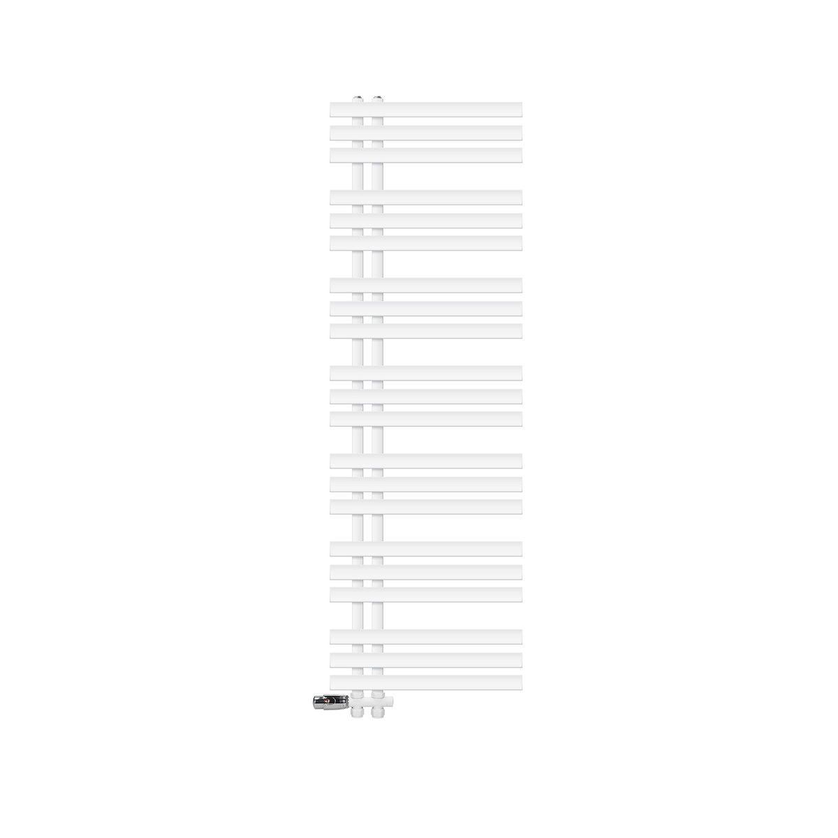 LuxeBath Badheizkörper Iron EM 600×1600 mm Weiß, Seitenanschluss, Thermostat Durchgang-Boden, Design Heizkörper Handtuchtrockner