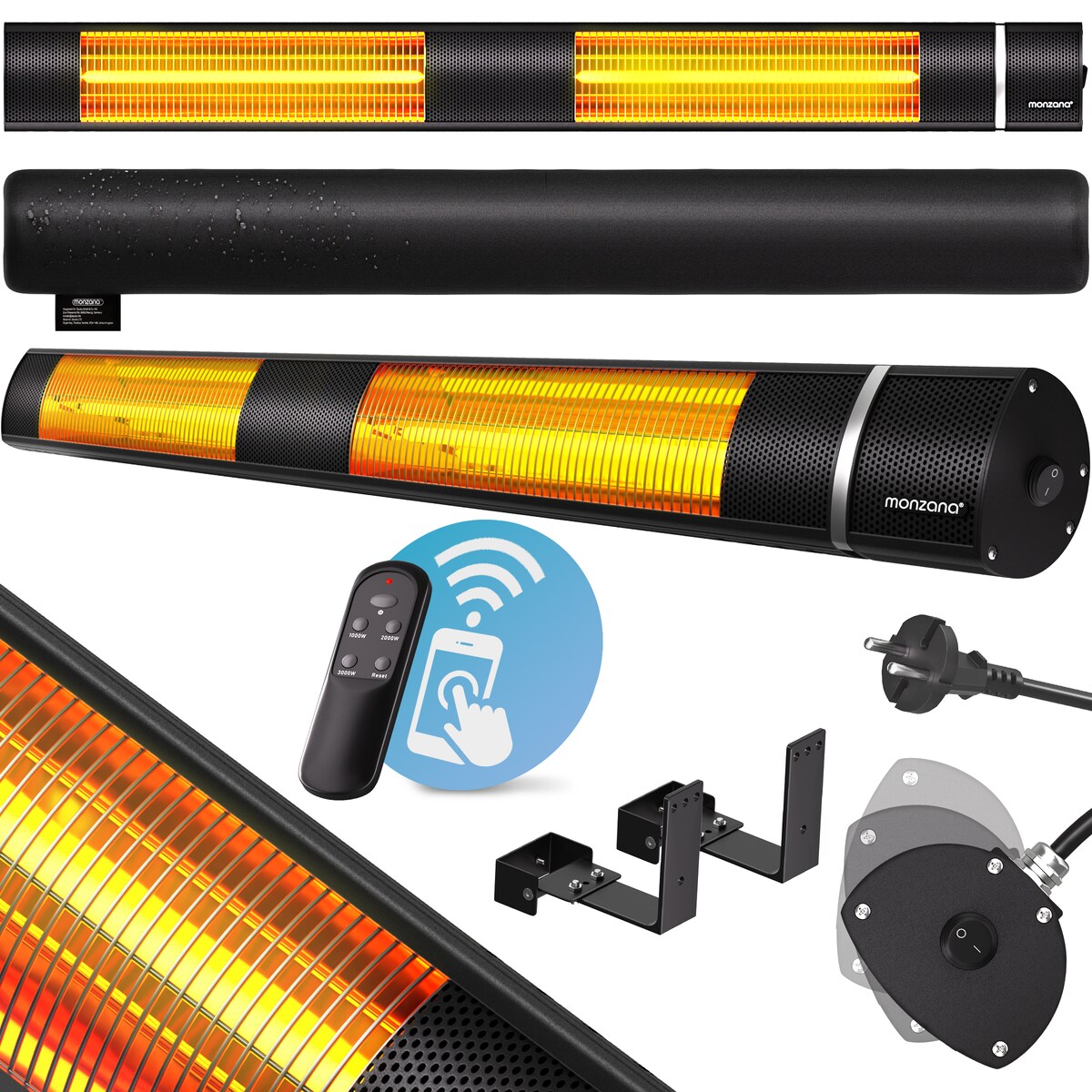 MONZANA Infrarot Heizstrahler MZH3000 Goldröhre 3000W 3 Heizstufen Fernbedienung Terrassenstrahler Elektrisch App Schutzhülle, Farbe:schwarz