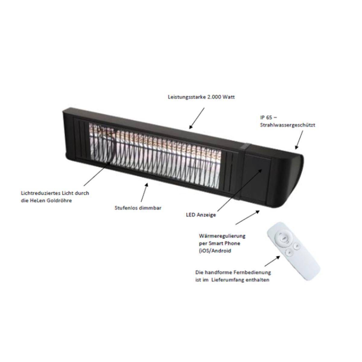 Infrarot-Heizstrahler HeizMeister LuXus Professionell 2 kW schwarz