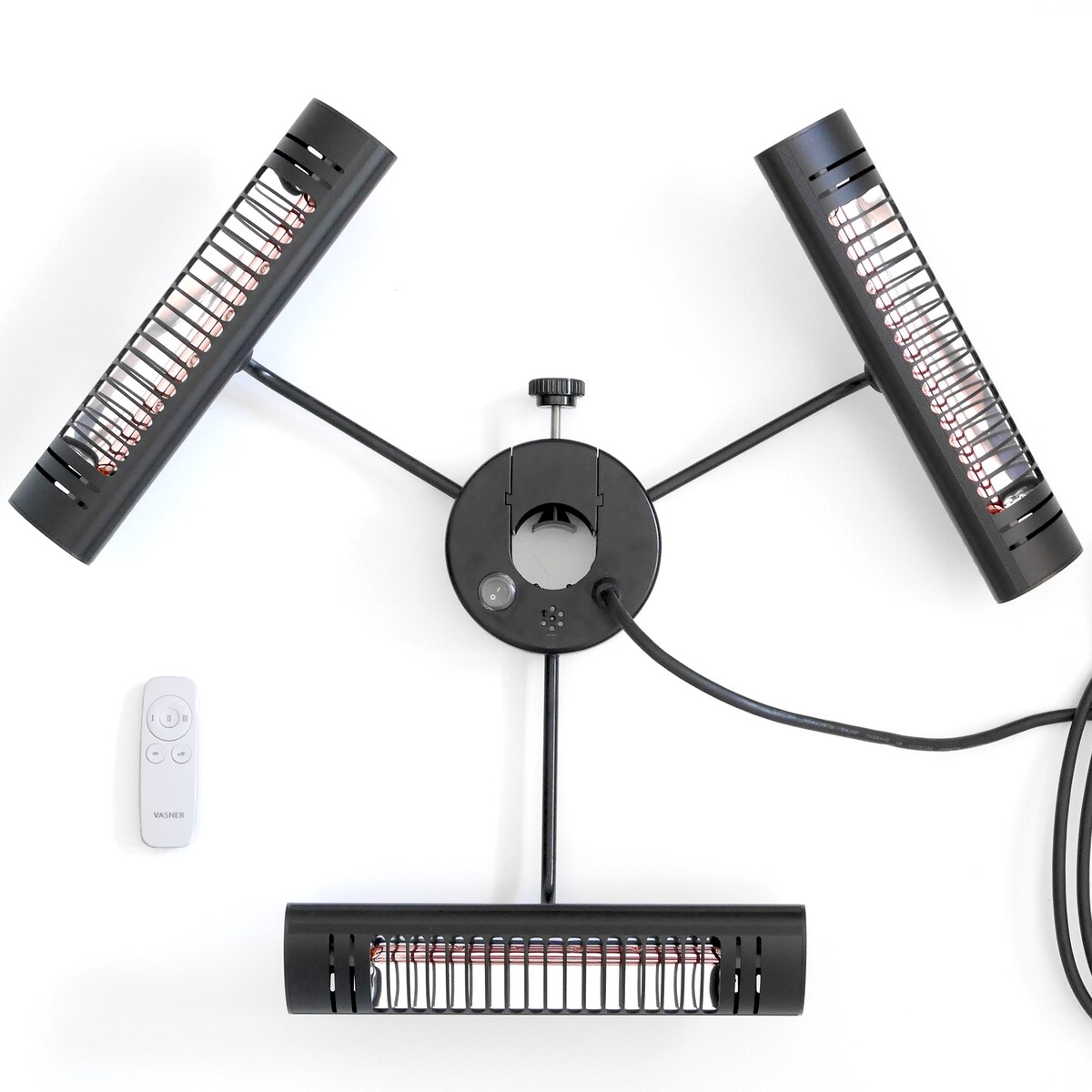VASNER Umbrella X30 Schirm Heizstrahler Schwarz 3000 Watt für Sonnenschirm mit Stangen-Durchmesser 40 – 80 mm