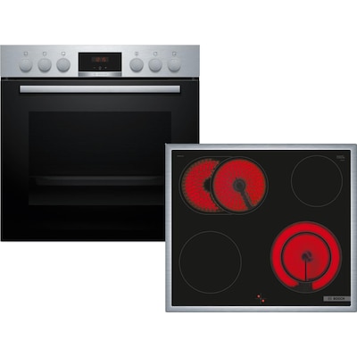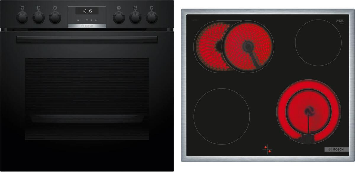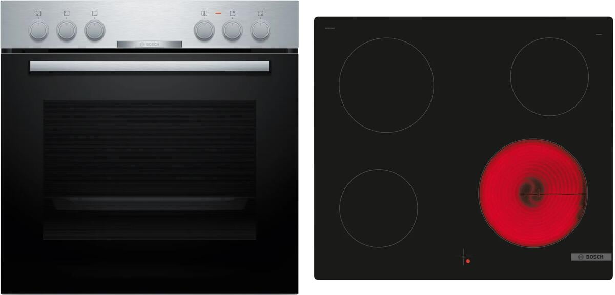 Bosch HND210CS63 EEK: A Einbau-Herd-Set mit Elektro-Kochfeld (HEA510BS3 + NKE611GA2E), 60 breite, 71 L, 3D-Heißluft, Versenkknebel, Kindersicherung, R