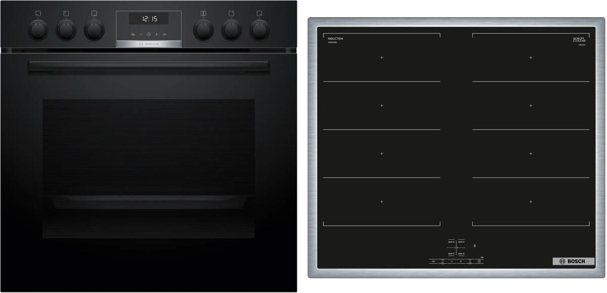 Bosch HND677LS62 EEK: A+ Einbau-Herd-Set mit Induktionskochfeld (HEG578BB4 + NVQ645CB6E), 60 cm breit, 71 L, 3D-Heißluft, Air Fry, Pyrolytisch+Hydroly