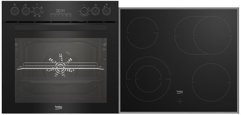 Beko BBUE1732T0B EEK: A Herd Set mit Glaskeramikkochfeld, 59,4 cm breit, 66 L, 6 Heizarten, SteamShine, schwarz