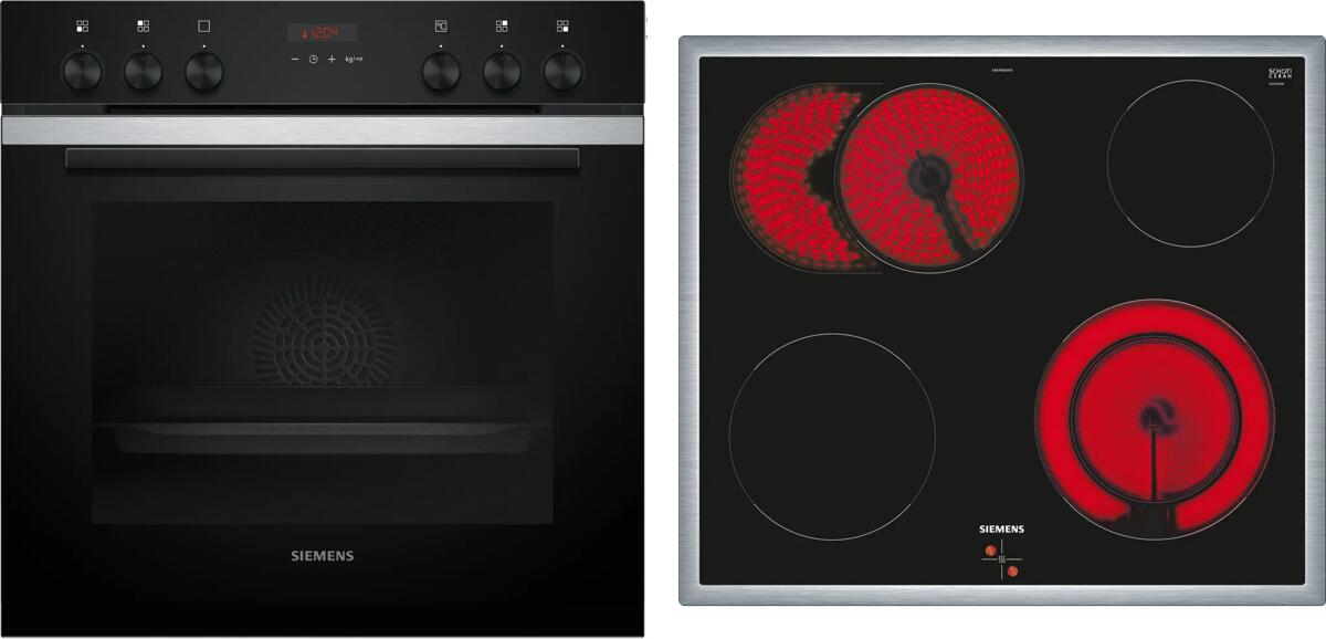Siemens EQ110KA3BB Einbau-Herd-Set, HE010FBA1 + EA631GNA1E + HZ438201, Einbau-Herd, Elektro-Kochfeld, Teleskopauszug, 2-fach
