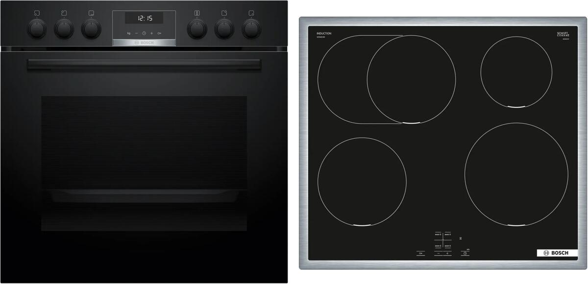 Bosch HND615LS62 EEK:A+ Einbau-Herd-Set mit Induktionskochfeld (HEG517BB4 + NIF645CB5E), 60 cm breit, 71 L, 3D-Heißluft, Hydrolytisch, Kindersicherung