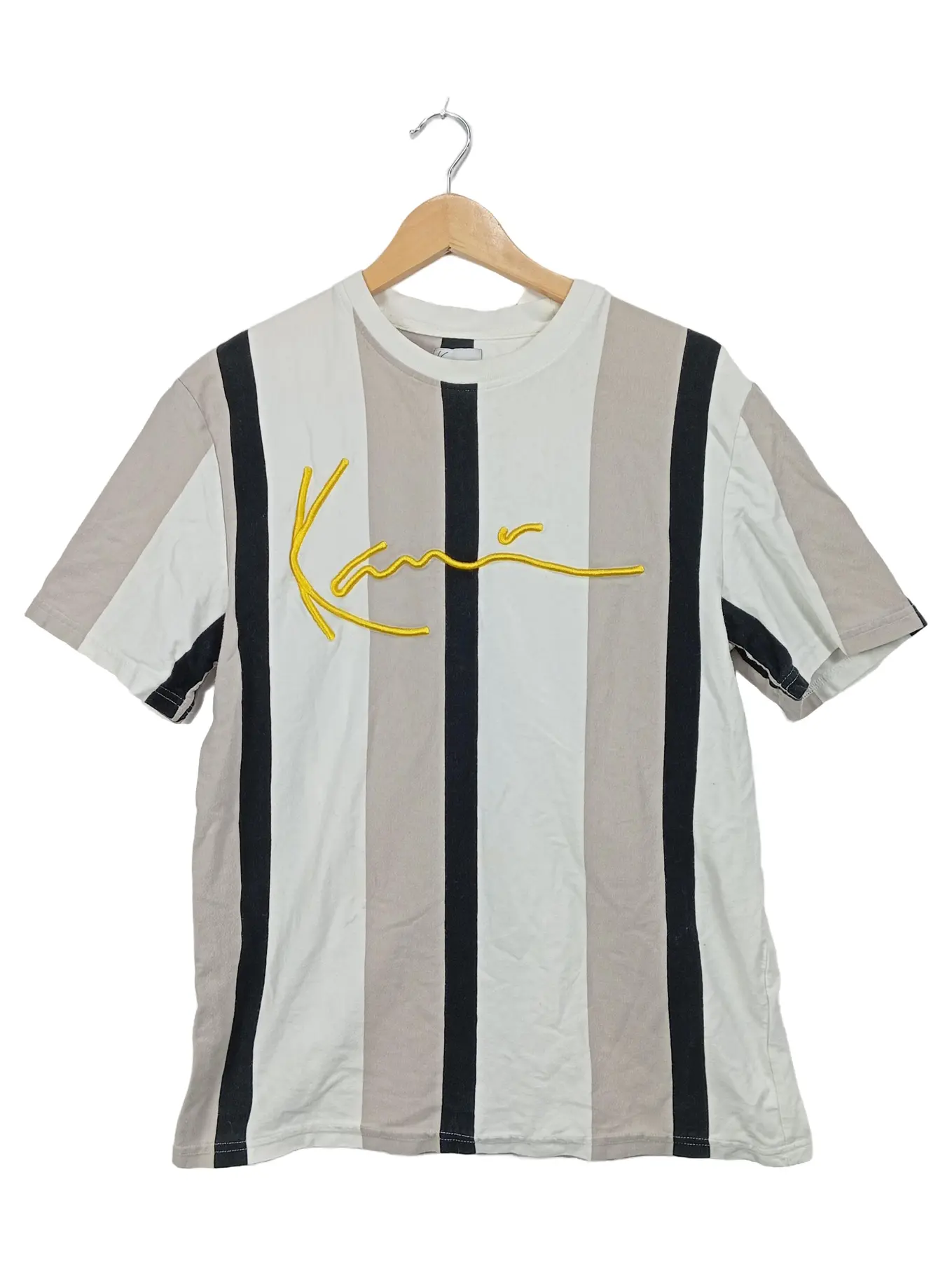 KARL KANI Herren T-Shirt Gr. S Gestreift Logo Stickerei Streetwear