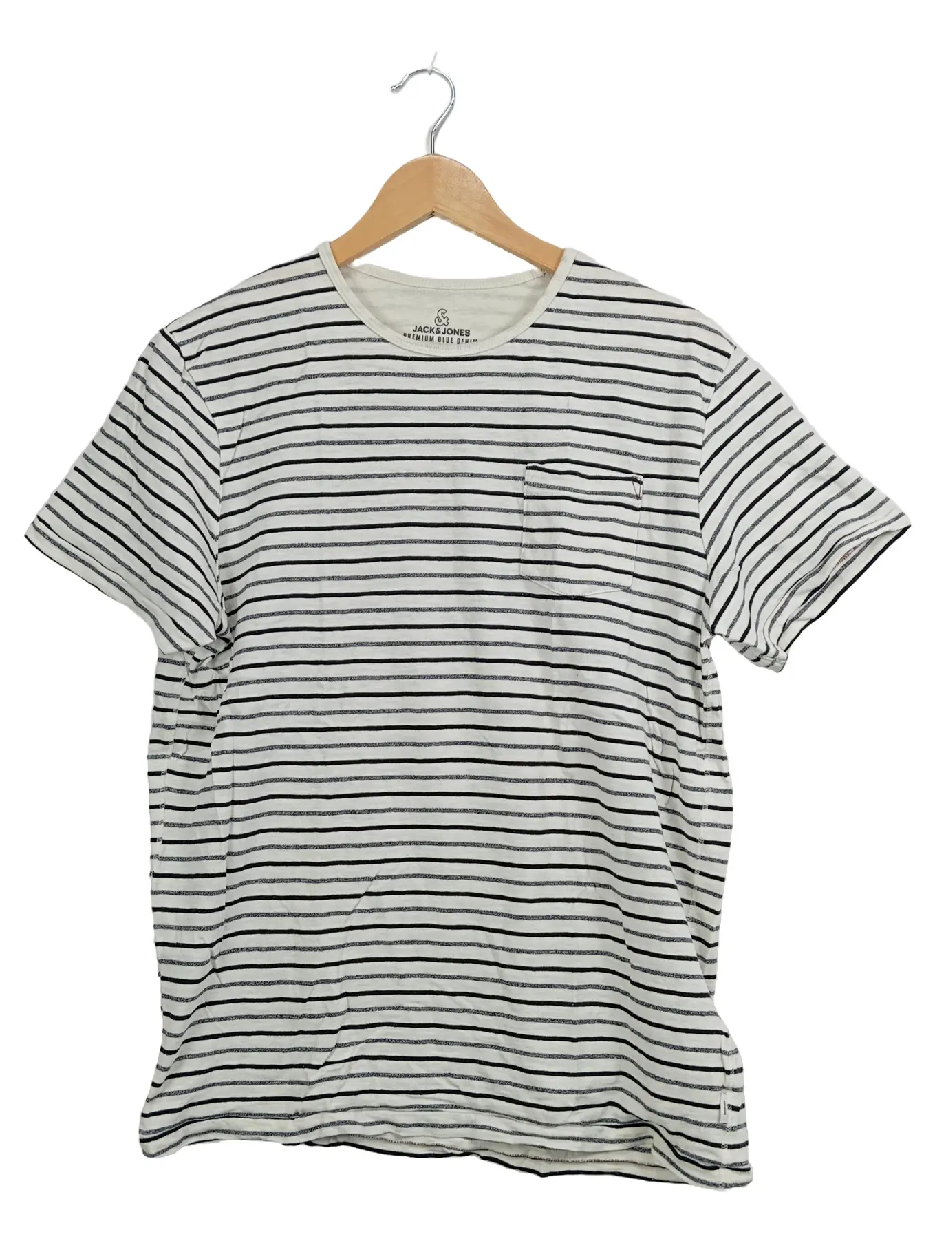 JACK & JONES Herren T-Shirt Gr. L gestreift weiß blau Baumwolle