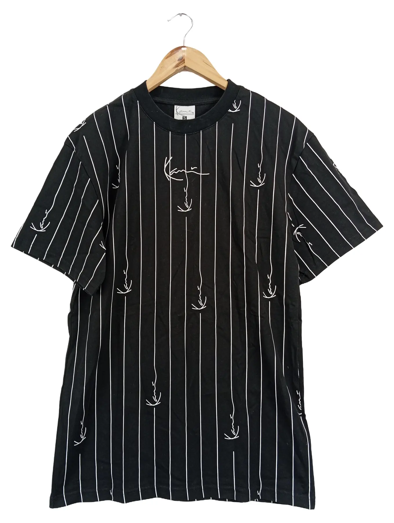 KARL KANI Herren T-Shirt Gr. S Schwarz Gestreift Streetwear