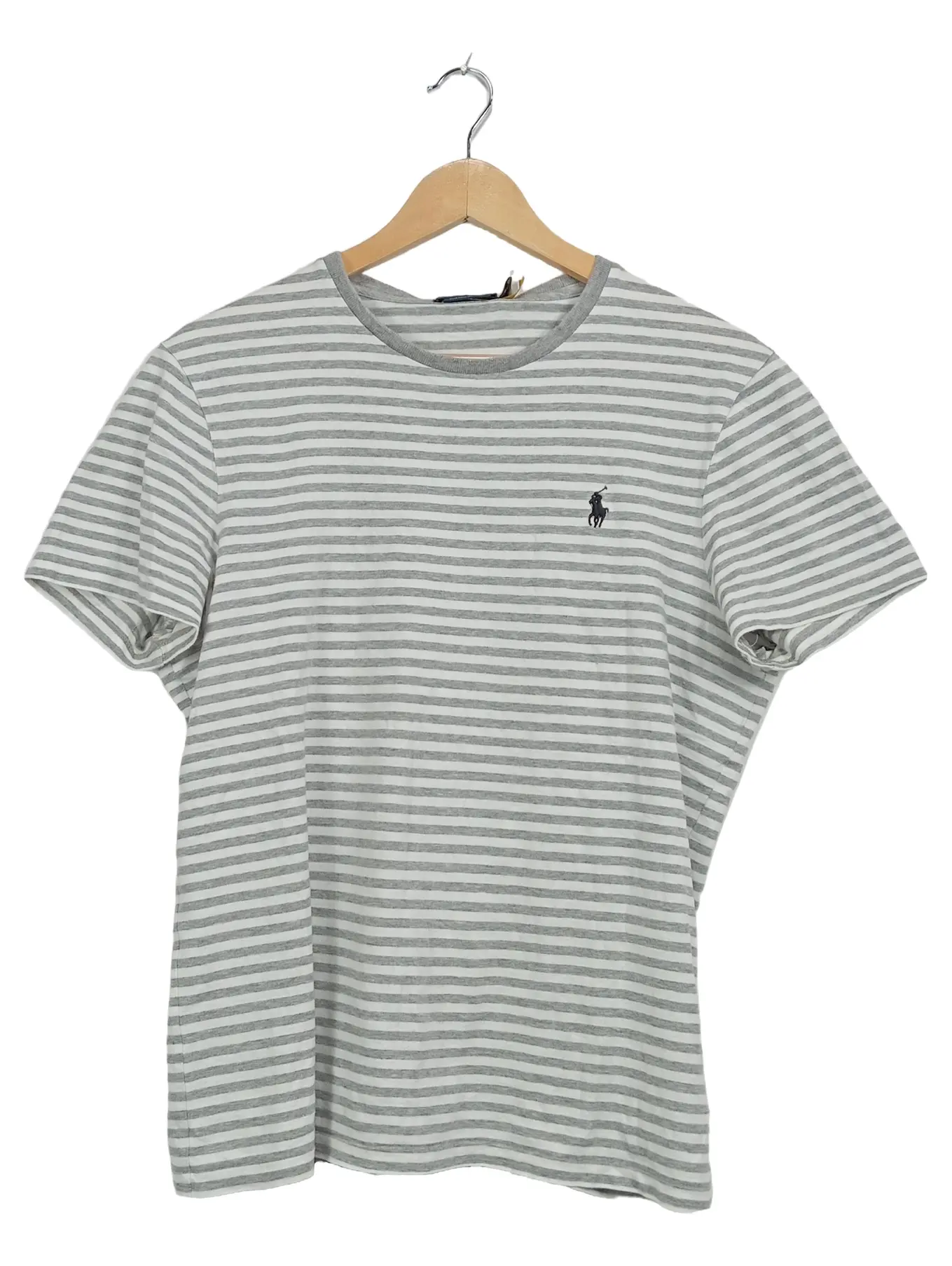 POLO RALPH LAUREN Herren T-Shirt Gestreift Grau Weiß Gr. M Custom Slim Fit