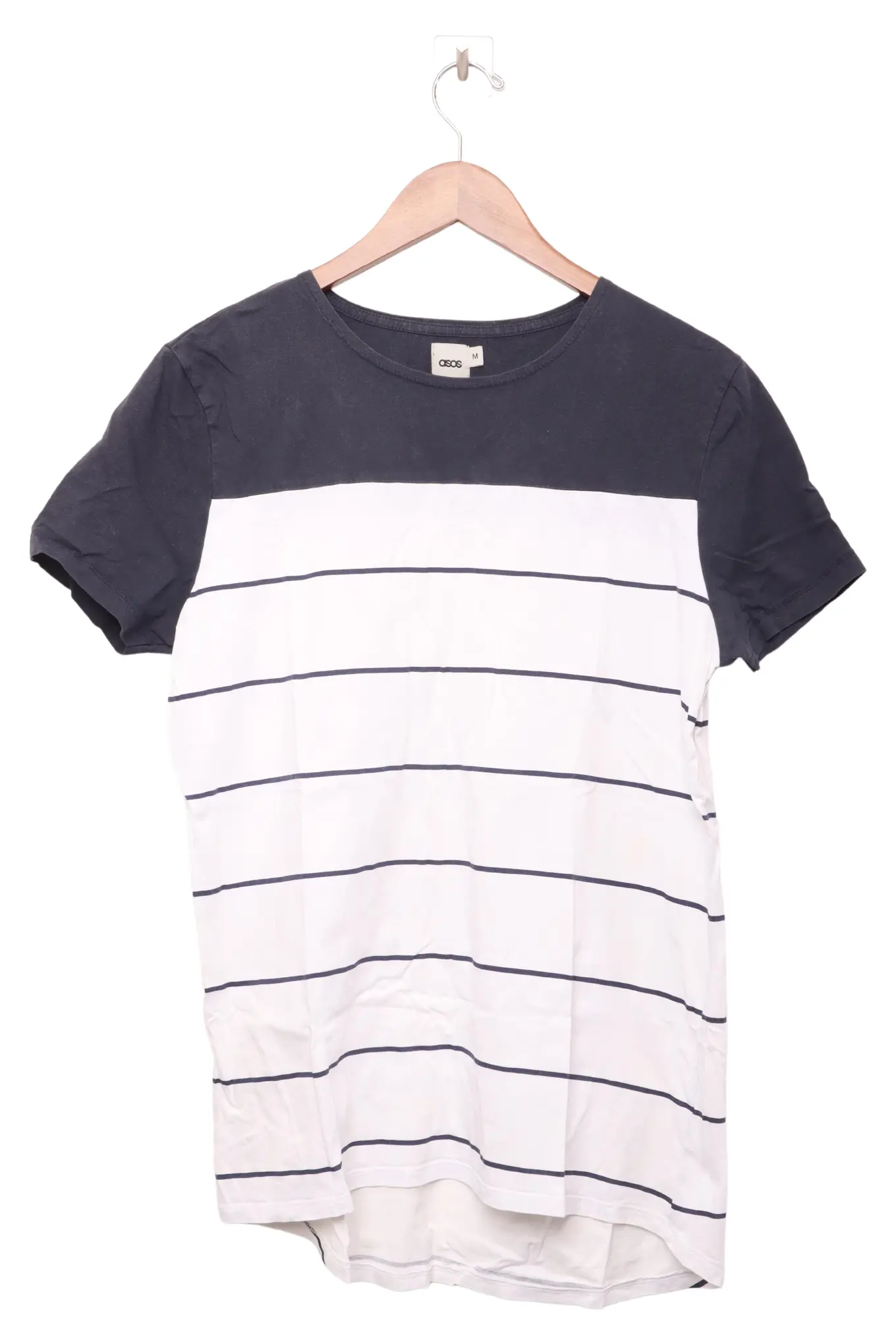ASOS Herren T-Shirt Blau Weiß Gestreift Kurzarm Baumwolle Gr. M/48
