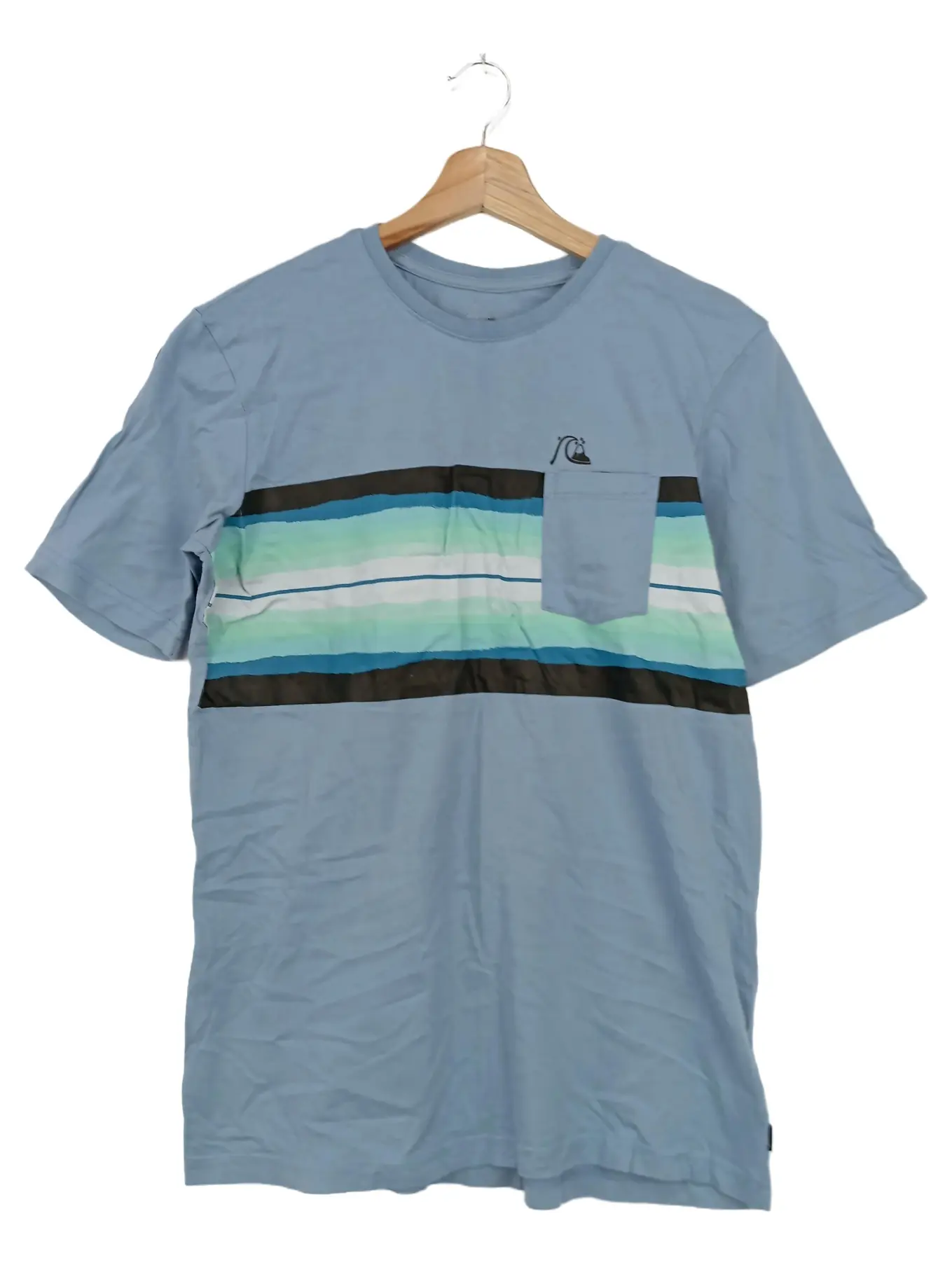 QUIKSILVER Herren T-Shirt Blau Gestreift Logo-Print Casual Sportlich Einheitsgröße