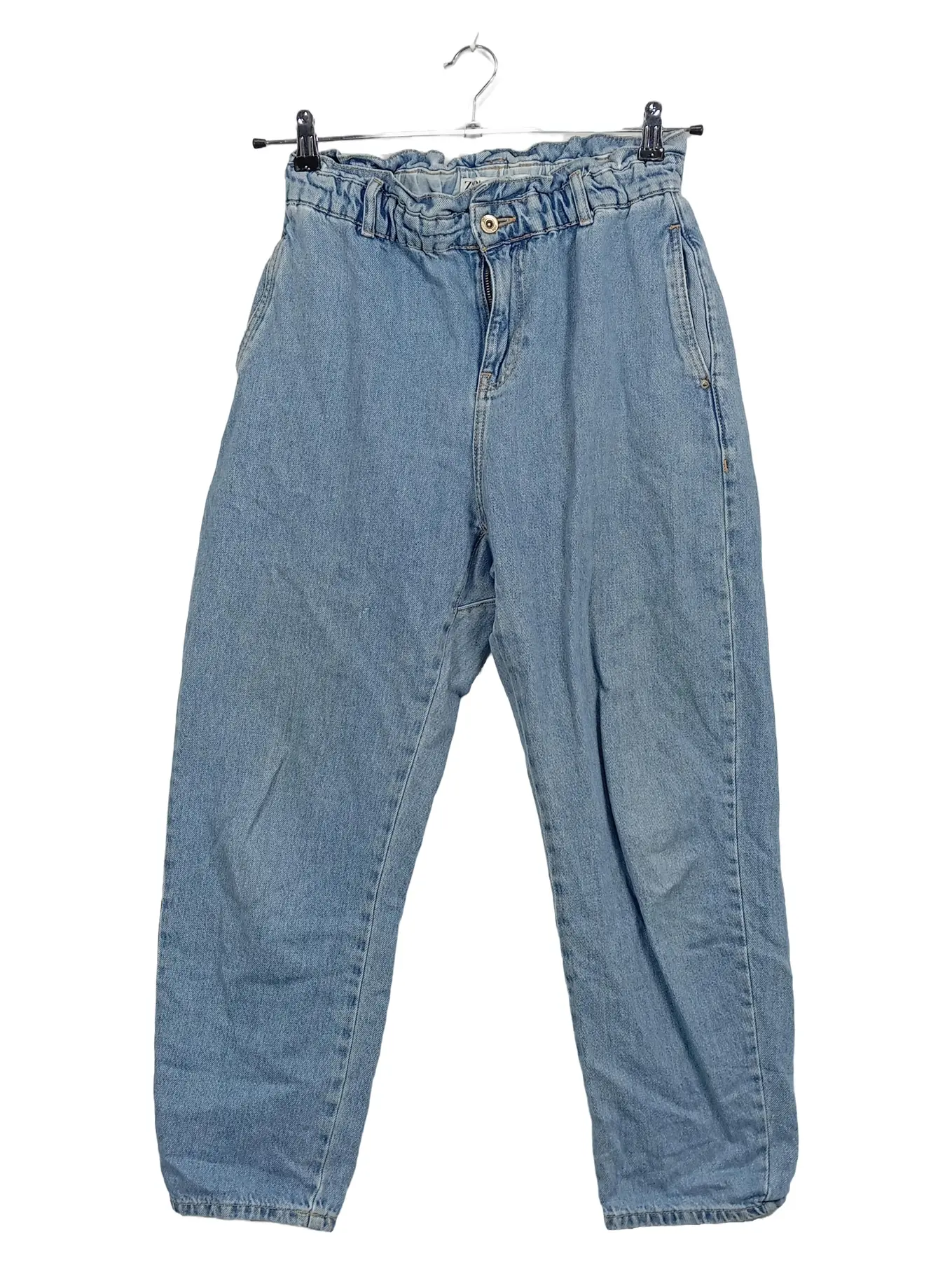 ZARA Mom Jeans Paperbag Damen Gr. 36 Hellblau High Waist Baumwolle